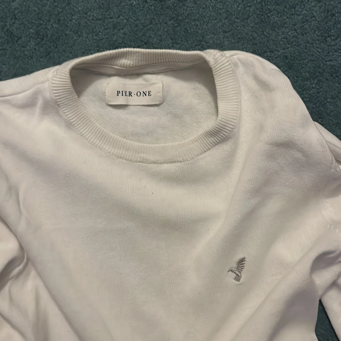 Snygg vit långärmad tröja från Pier One med rund hals och diskret broderad fågel på bröstet. Tröjan är gjord i mjuk bomull och har ribbad kant vid halsen samt klassisk passform. Perfekt för dig som gillar stilrena och enkla plagg.