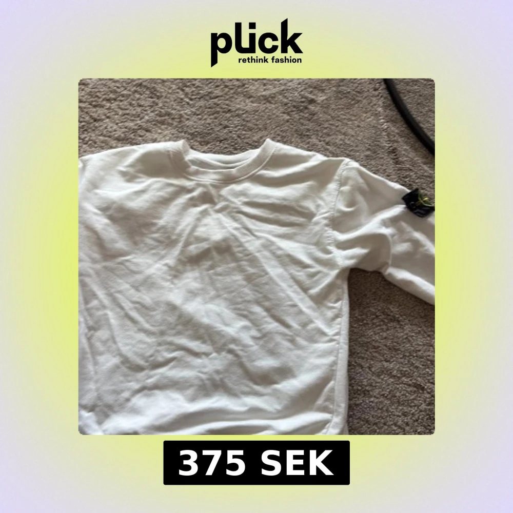 Vit långärmad tröja från Stone Island med klassisk rund halsringning och ikoniskt svart märke med gul och grön brodyr på vänster ärm. Tröjan är i mjuk bomull och har en clean, stilren look som passar perfekt till jeans eller joggers.
