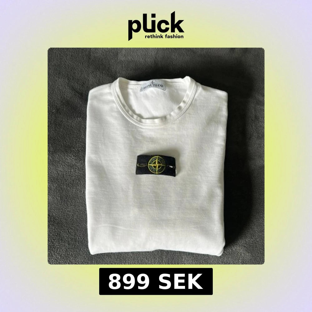 Säljer en stilren vit långärmad tröja från Stone Island med den klassiska logotypen på armen. Tröjan har rund halsringning och är tillverkad i mjukt material. Vid frågor tveka inte på att höra av dig!