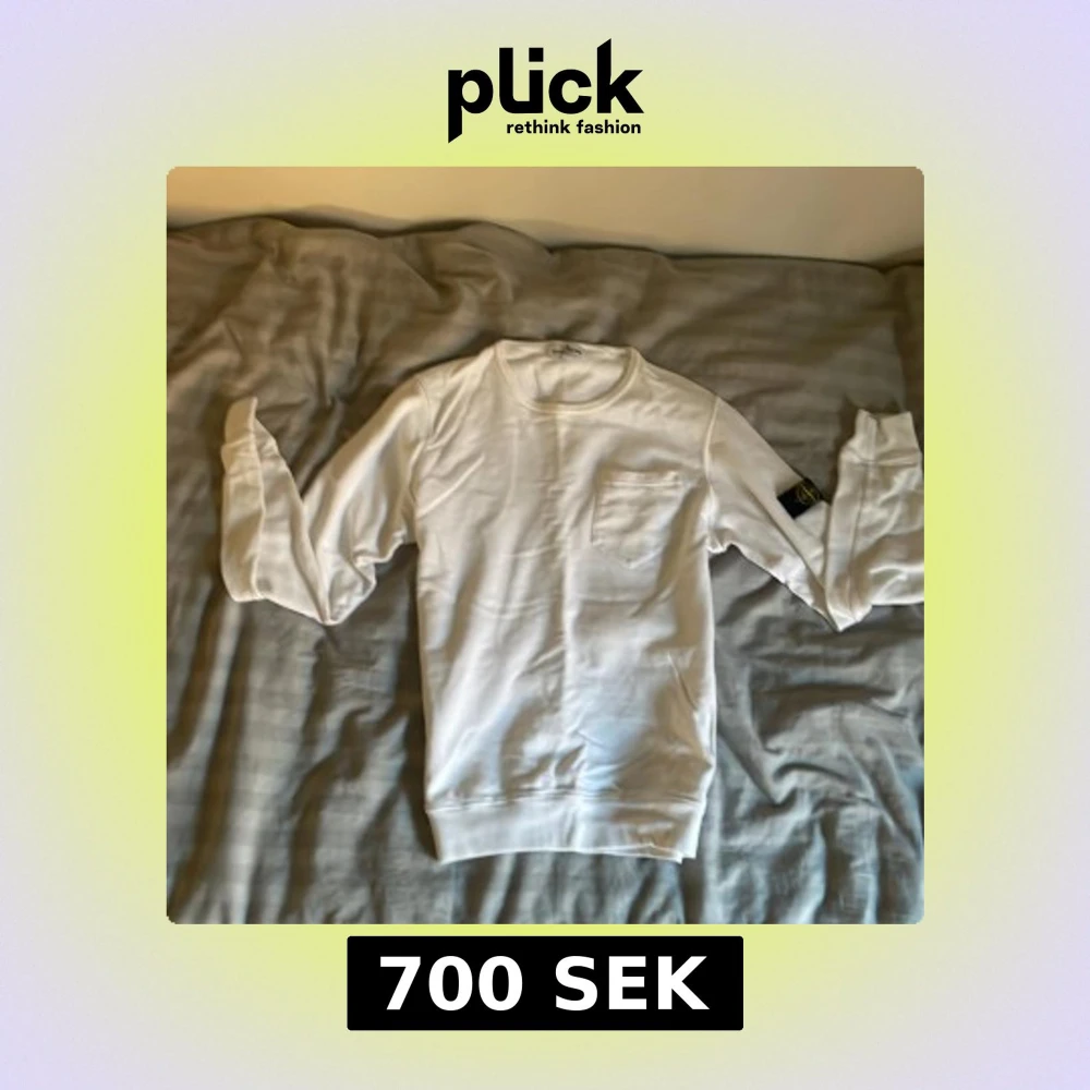 Säljer en stilren vit långärmad tröja från Stone Island Junior. Tröjan har en bröstficka och det ikoniska Stone Island-märket på ärmen. Perfekt för en avslappnad och trendig look. Model 179cm och 65kg. Nypris 1660kr