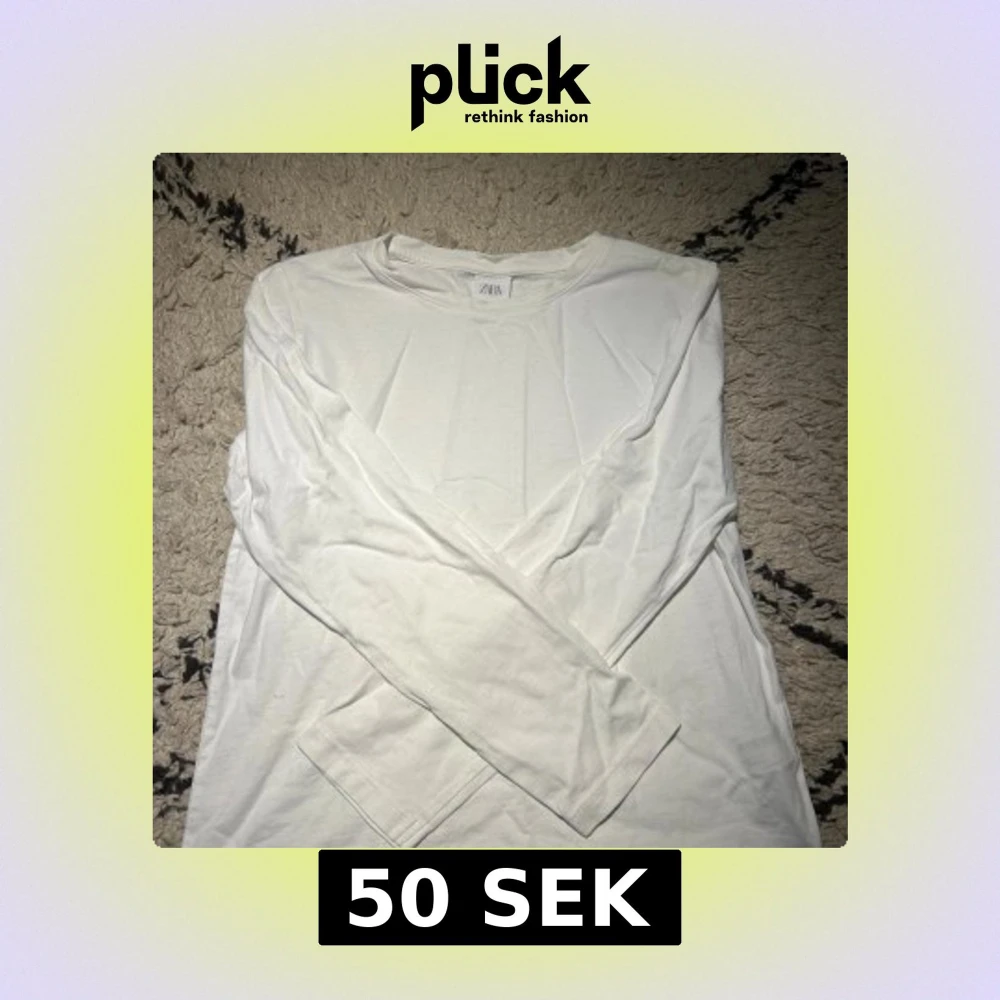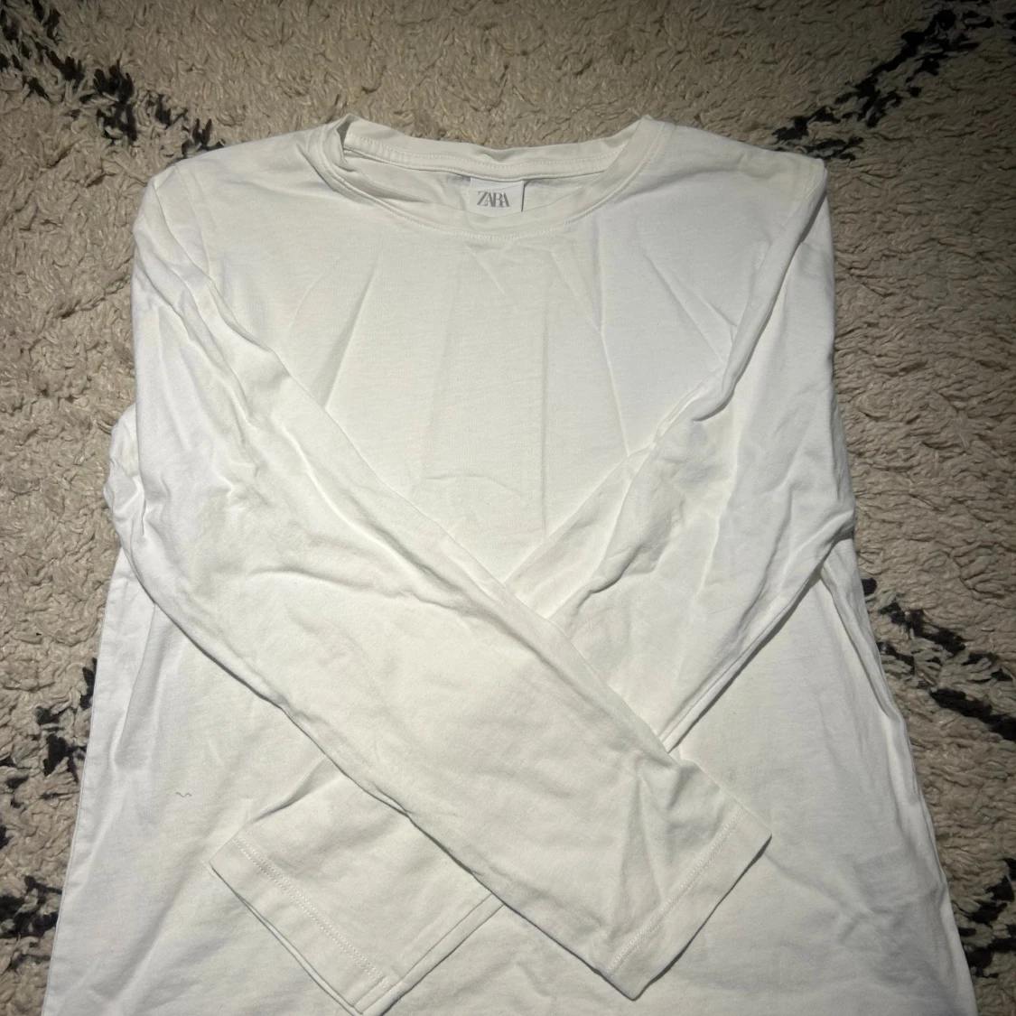 En stilren vit långärmad tröja från Zara i mjuk bomull. Tröjan har en klassisk rund halsringning och enkel design utan mönster eller detaljer. Perfekt för dig som gillar minimalistisk och clean stil.