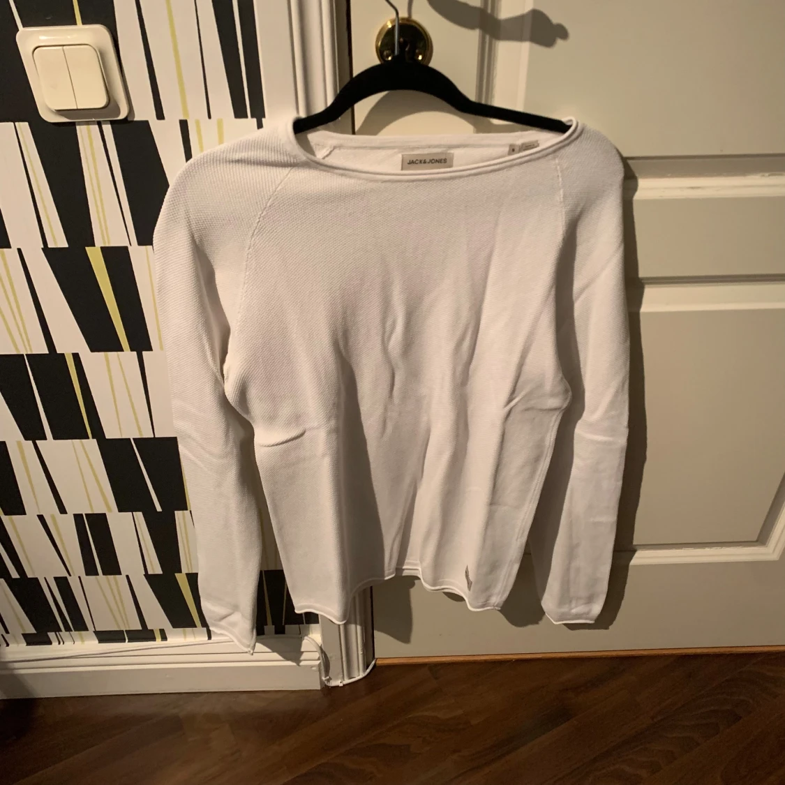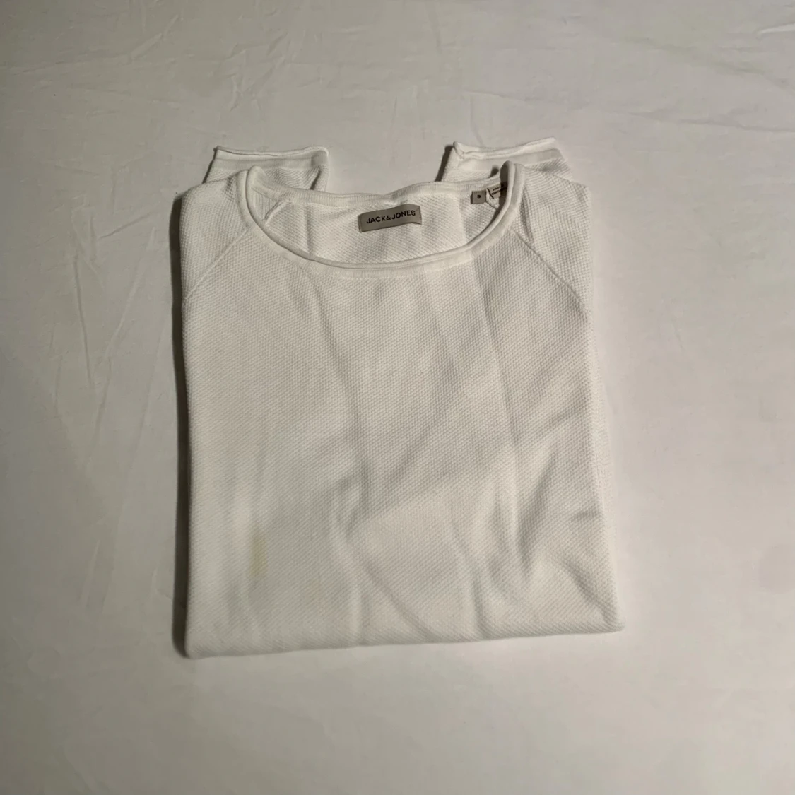 Klassisk vit långärmad tröja från Jack & Jones i bomull. Tröjan har rund halsringning och en diskret, stilren design som passar perfekt till jeans eller chinos. Materialet är mjukt och lätt strukturerat för en snygg look.