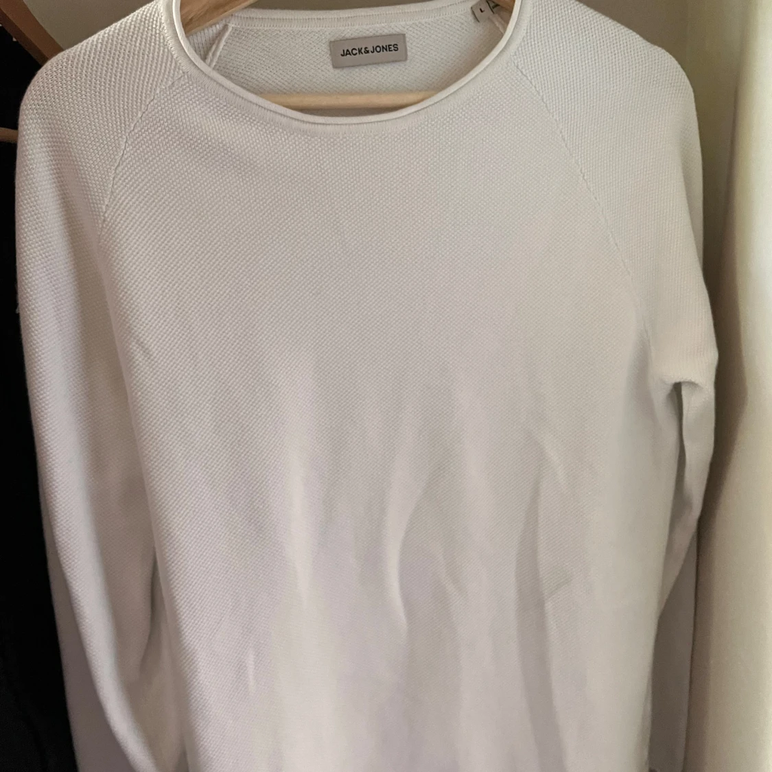 Snygg vit långärmad tröja från Jack & Jones i bomull. Tröjan har en rund halsringning och diskret struktur i tyget som ger en stilren look. Perfekt att matcha med jeans eller chinos för en clean outfit.