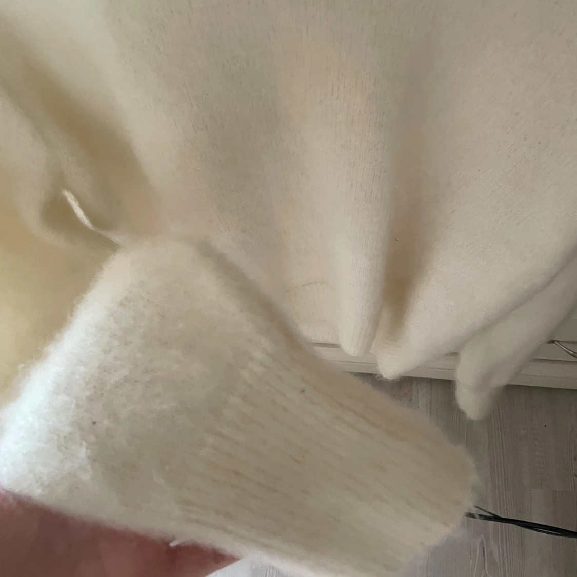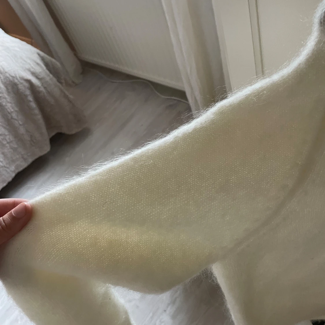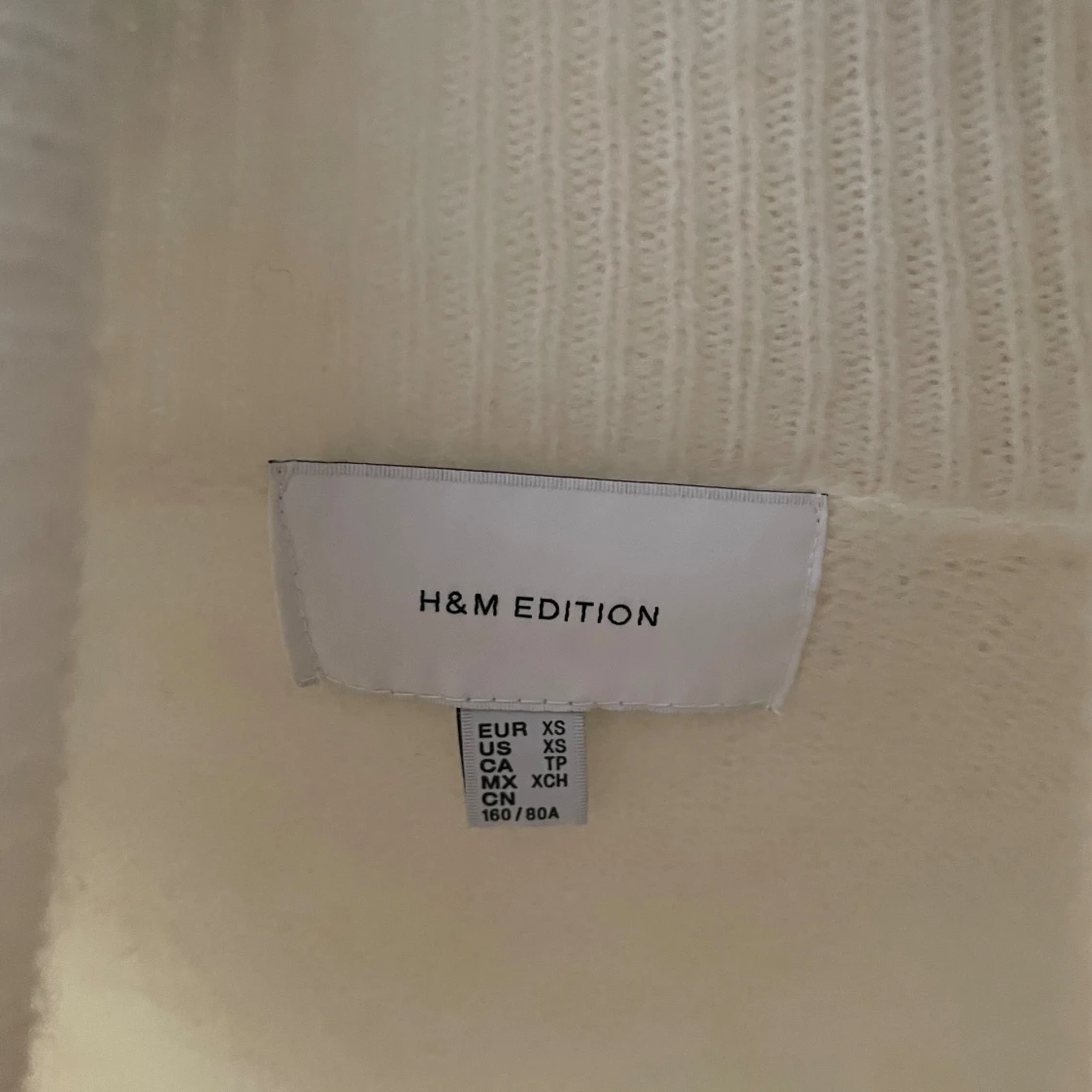 Supermjuk och fluffig vit mohair tröja från H&M Edition. Tröjan är stickad med hög krage och har långa ärmar samt ribbade muddar. Perfekt för kyliga dagar och ger en clean och stilren look. Den är aldrig använd!