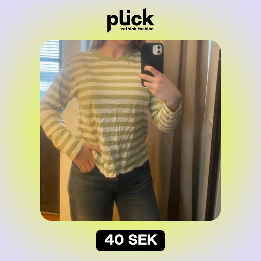 Grön-och vit randig tröja från Monki, strl S, sparsamt använd💚
