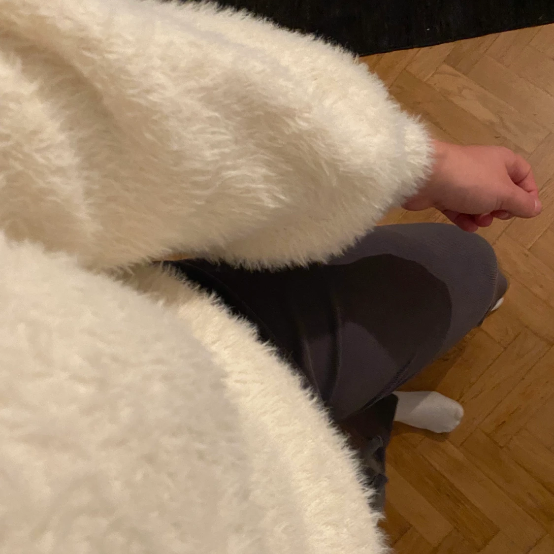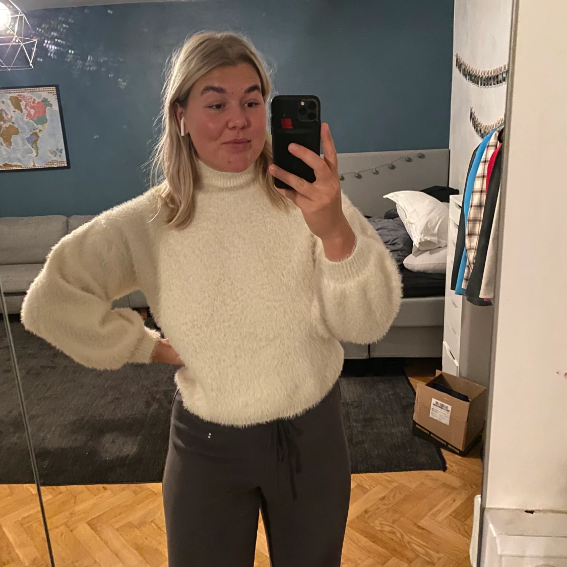 Jättefin lurvig vit tröja med lätt polokrage. Hur skön som helst och i toppskick! Strl M från NA-KD