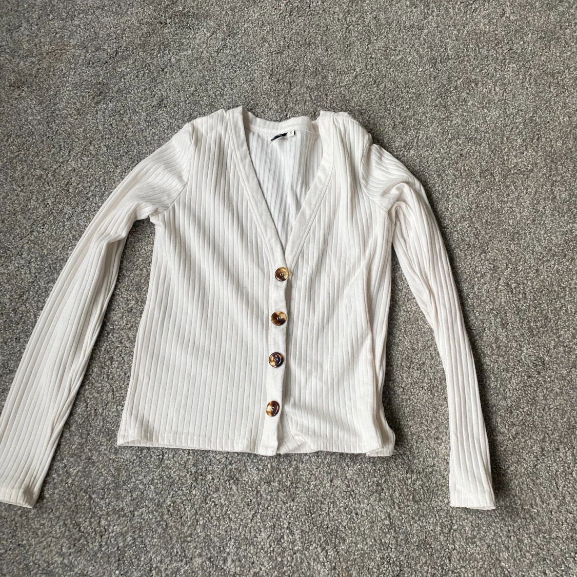 Vit kofta från Nelly. Hittade den inte på hemsidan men det var den närmaste. Bilden är inte så bra min kom privat för fler bilder. Storlek S. Säljer för 50kr❤️