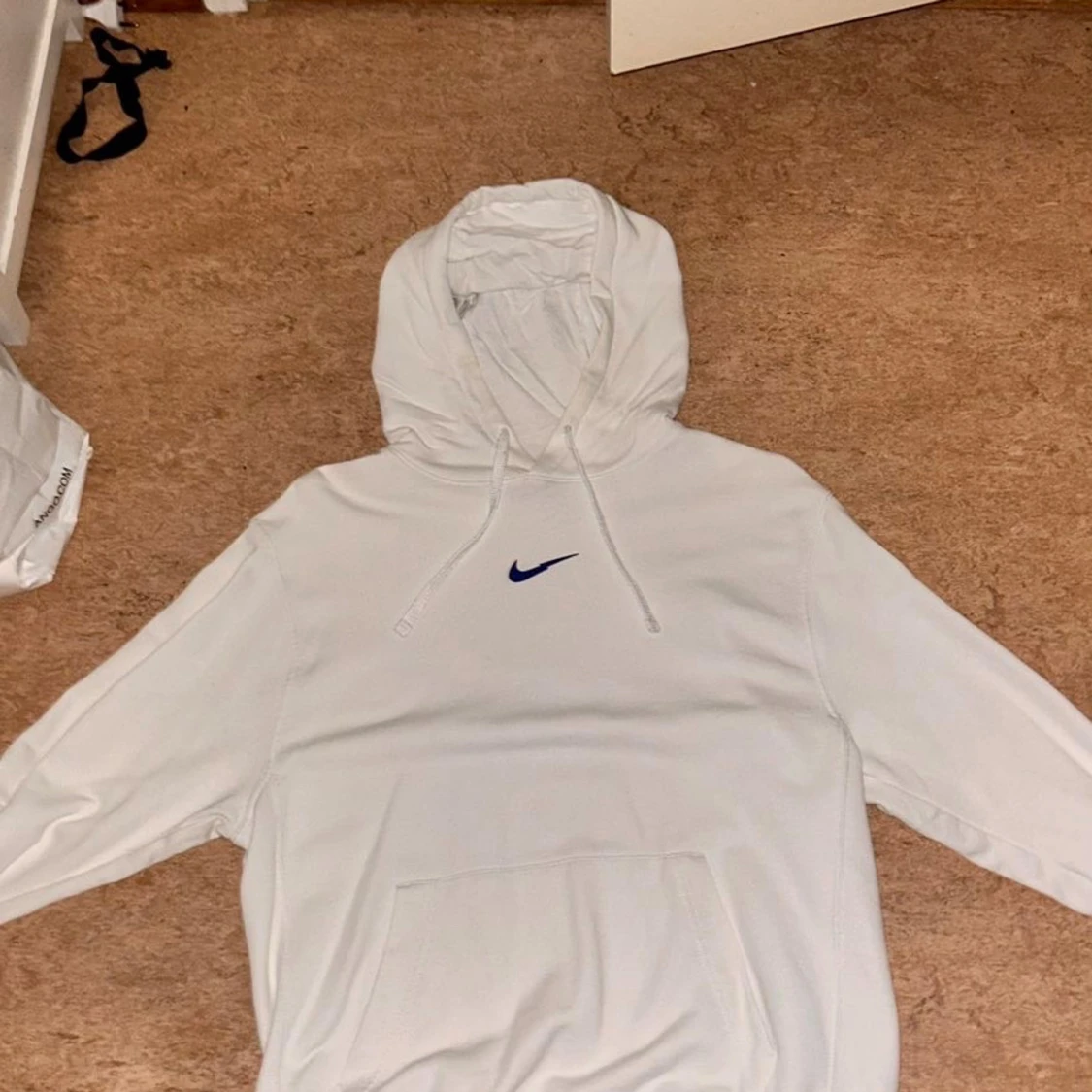 Tja! Hjälper att sälja ett par hoodies för en vän, Det är en vit nike hoodie som är sparsamt använd. Det är storlek S