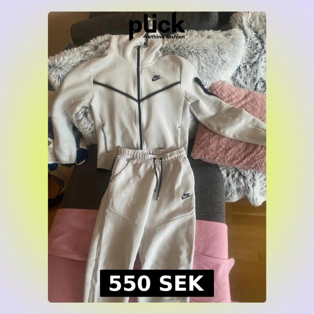 Säljer en fräsch vit hoodie från Nike med hel dragkedja och huva. Tröjan har svarta detaljer och logga på bröstet, samt långärmad design. Materialet är mjukt och känns som bomull, perfekt för chill eller träning. Snyggt sportigt snitt och ribbade muddar.