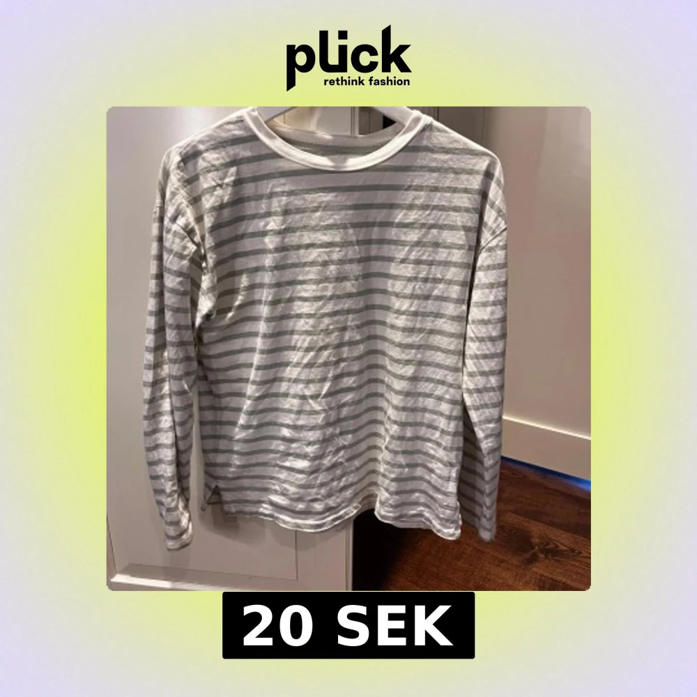 Vit långärmad tröja med ljusgröna horisontella ränder. Klassisk rund halsringning och mjukt bomullsmaterial. Perfekt för en avslappnad stil och enkel att matcha med jeans eller kjol.