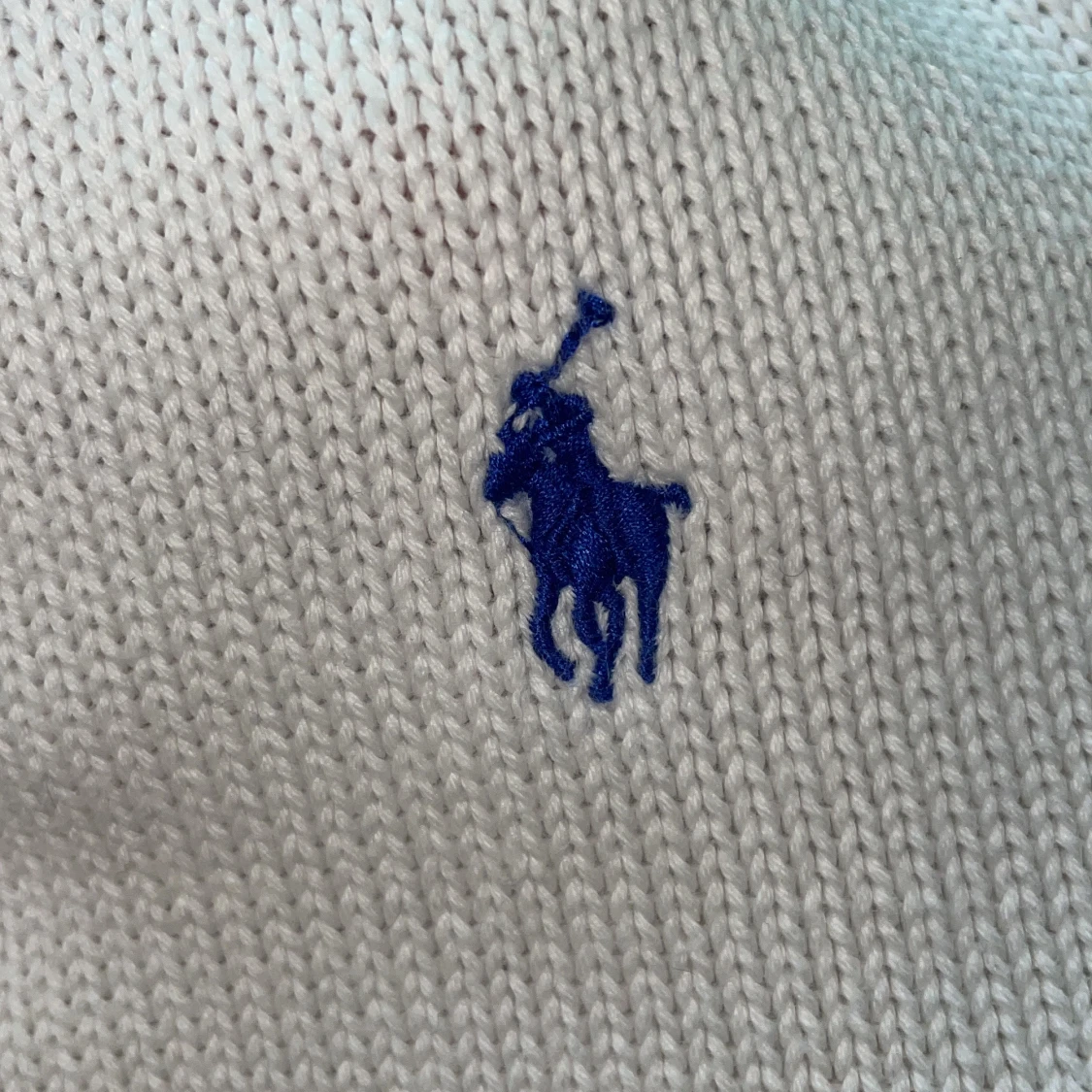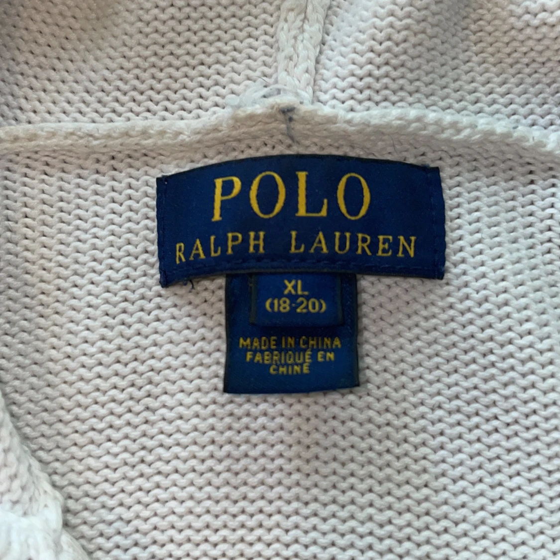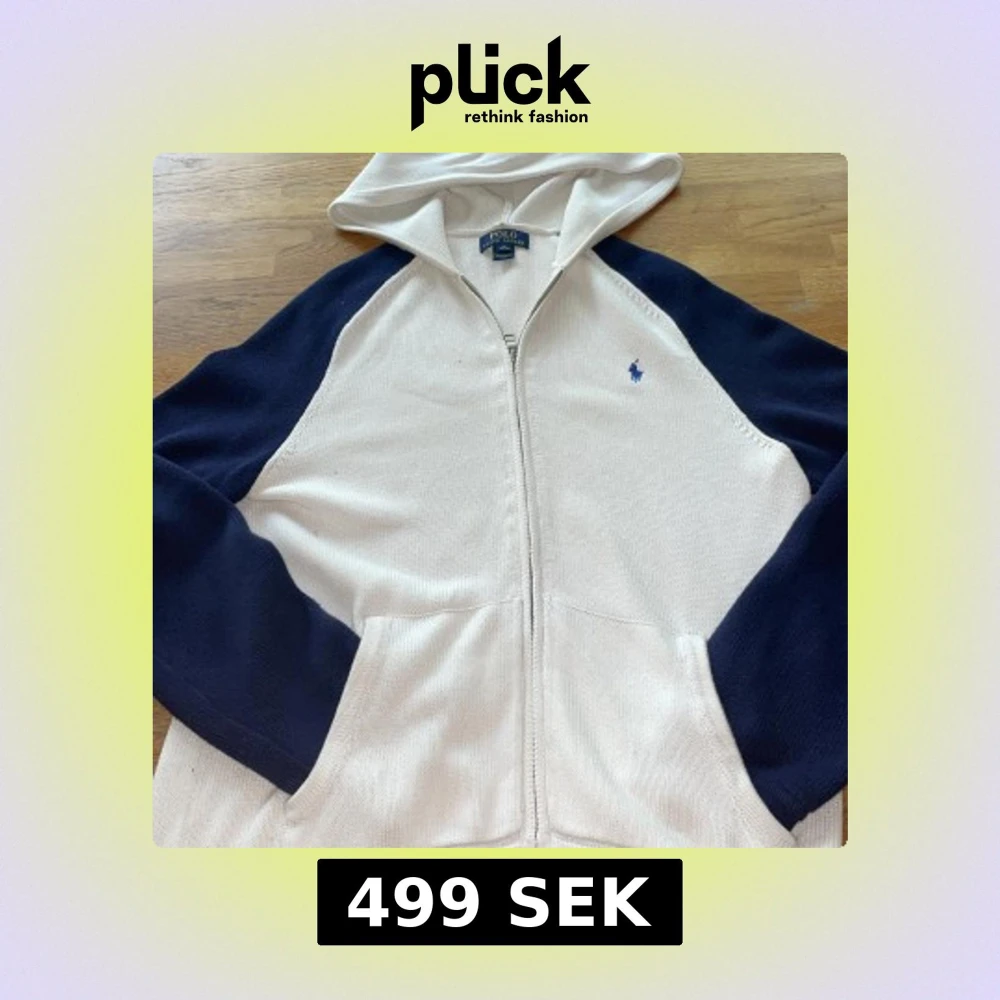 En vit och marinblå zip hoodie ifrån polo Ralph Lauren tyvärr saknas qr koden men är äkta skick skulle jag säga är 8/10 använd 3 gånger så letar ny ägare priset inte hugget i stenen bara skriva vid funderingar