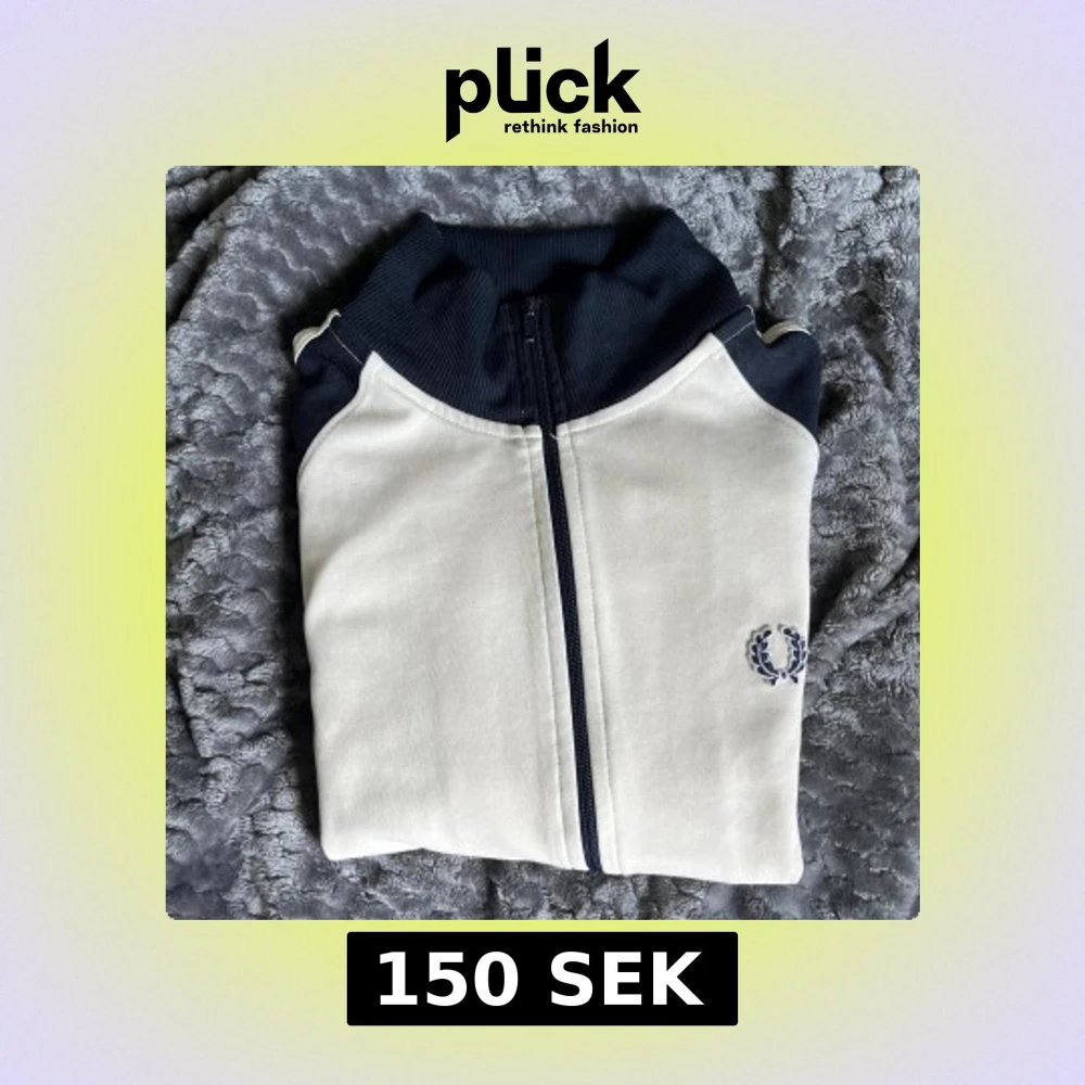 Säljer en stilren vit och marinblå track jacket från Fred Perry med dragkedja och broderad logga på bröstet. Jackan har ribbade muddar och klassisk sportig look. Perfekt för dig som gillar retrostil och streetwear.
