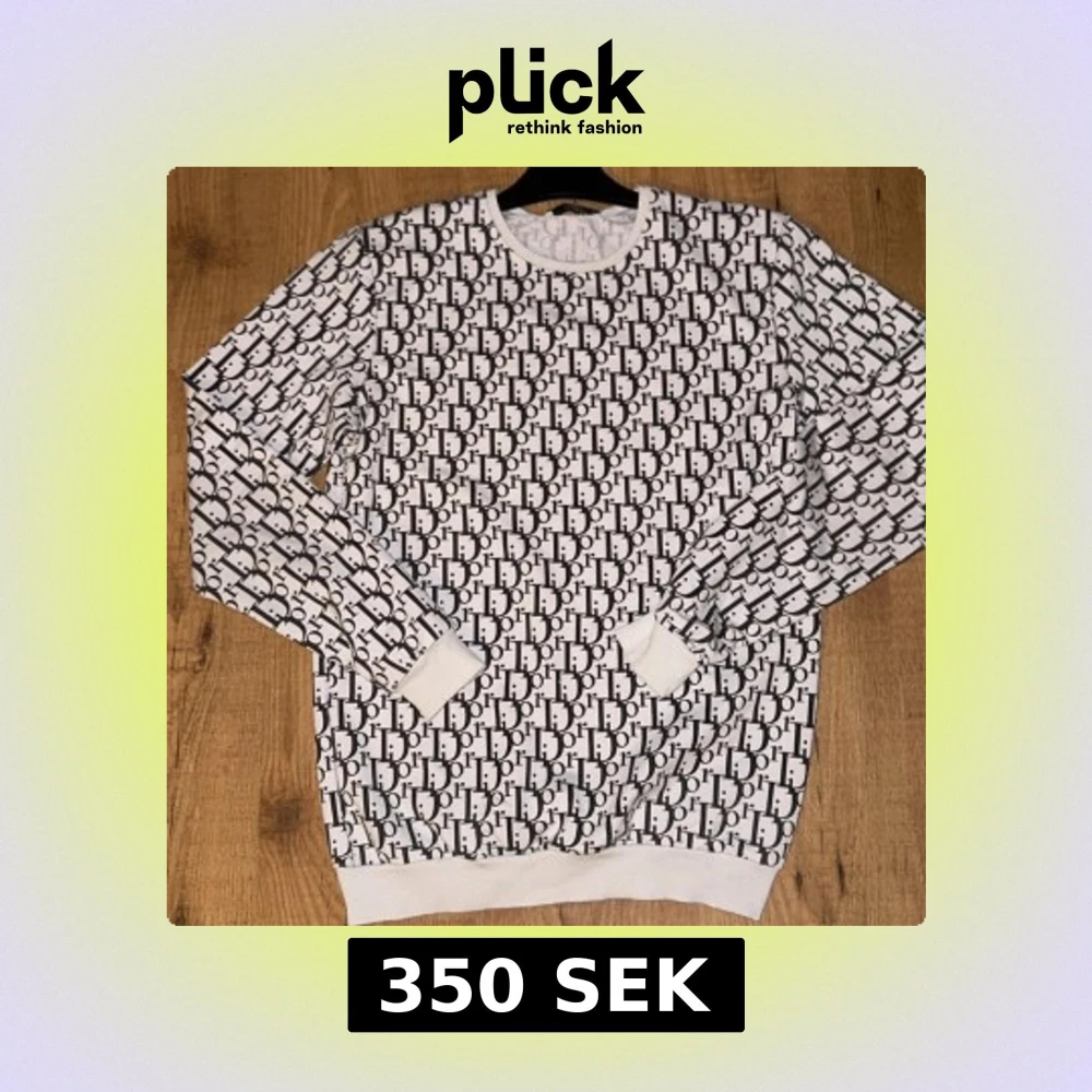 Snygg vit tröja med svart mönster över hela ytan. Tröjan har långa ärmar och rund halsringning. Perfekt för en stilren look.