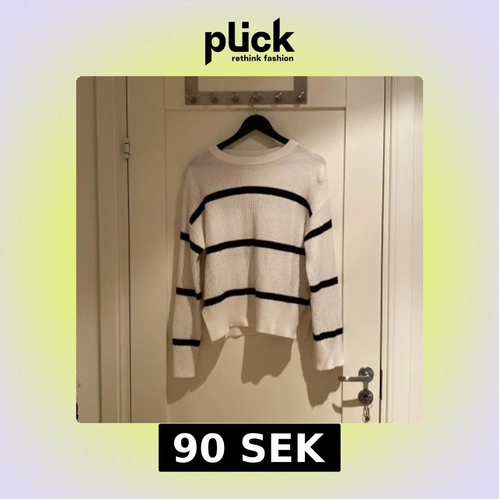 Säljer en vit stickad tröja från Kappahl med svarta horisontella ränder. Tröjan har rund halsringning, lång ärm och en lite boxig passform. Har använt några gånger.