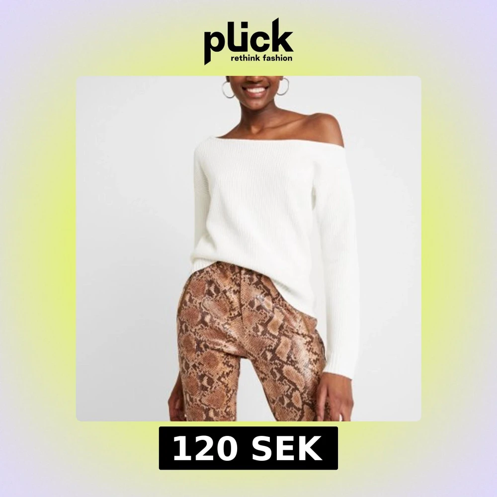 Vit stickad tröja med offshoulder-design och lång ärm. Tröjan har en ribbad struktur och en avslappnad passform som ger en snygg och modern look. Perfekt att styla med jeans eller kjol för en trendig vibe.