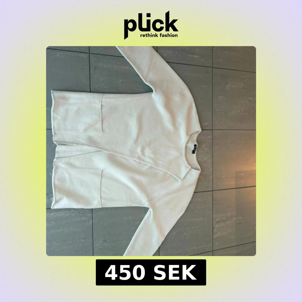 Säljer en stilren vit omlottkofta från Tiger of sweden med lång ärm och två praktiska fickor framtill. Koftan har en unik omlottdesign och är tillverkad i ett mjukt material som passar perfekt till lager-på-lager. Enkel att matcha med olika outfits. Min mammas kofta som inte kommer till användning:)