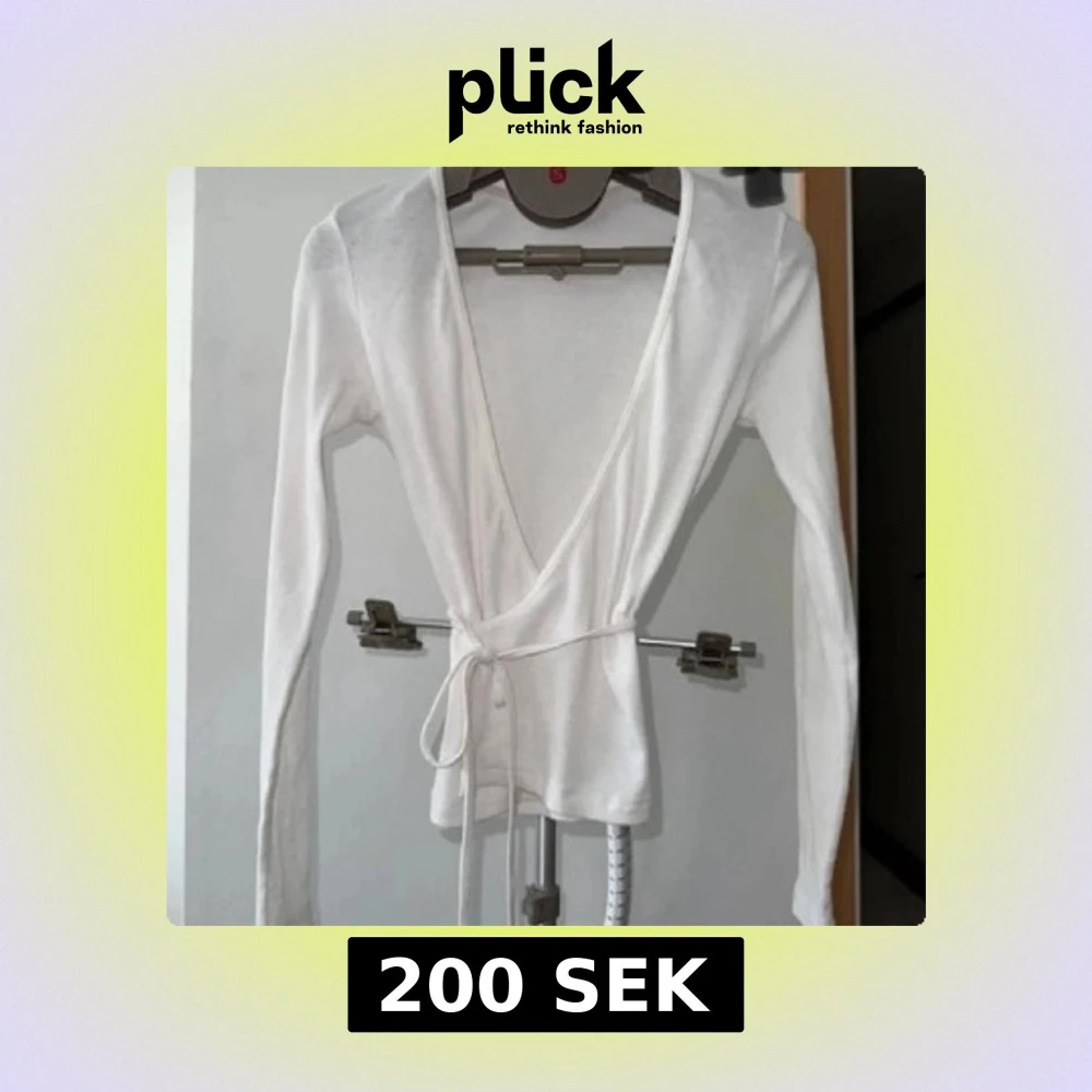 Säljer en stilren vit omlottopp i bomull med långa ärmar. Toppen har en knytning i midjan som ger en smickrande passform. Perfekt för en elegant och avslappnad look.