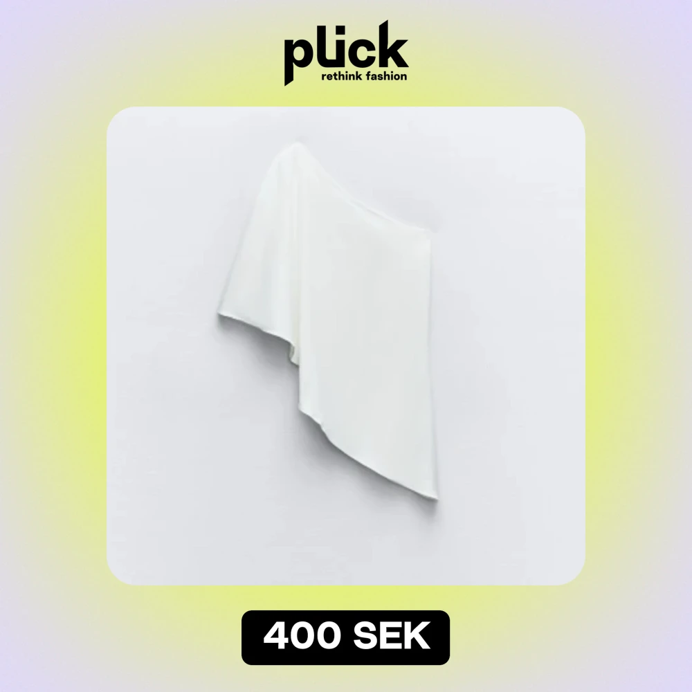 Säljer en stilren vit oneshoulder topp. Den är axelbandslös och har en elegant och enkel design. Passar både till vardags och fest!
