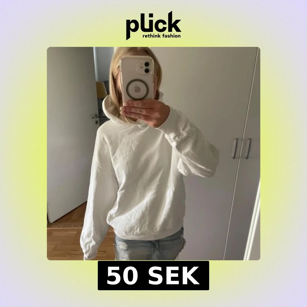 Säljer en vit hoodie med oversized passform och stor huva. Tröjan har långa ärmar och en klassisk känguruficka framtill. Perfekt för en chill och avslappnad stil. Materialet känns mjukt och skönt mot huden.
