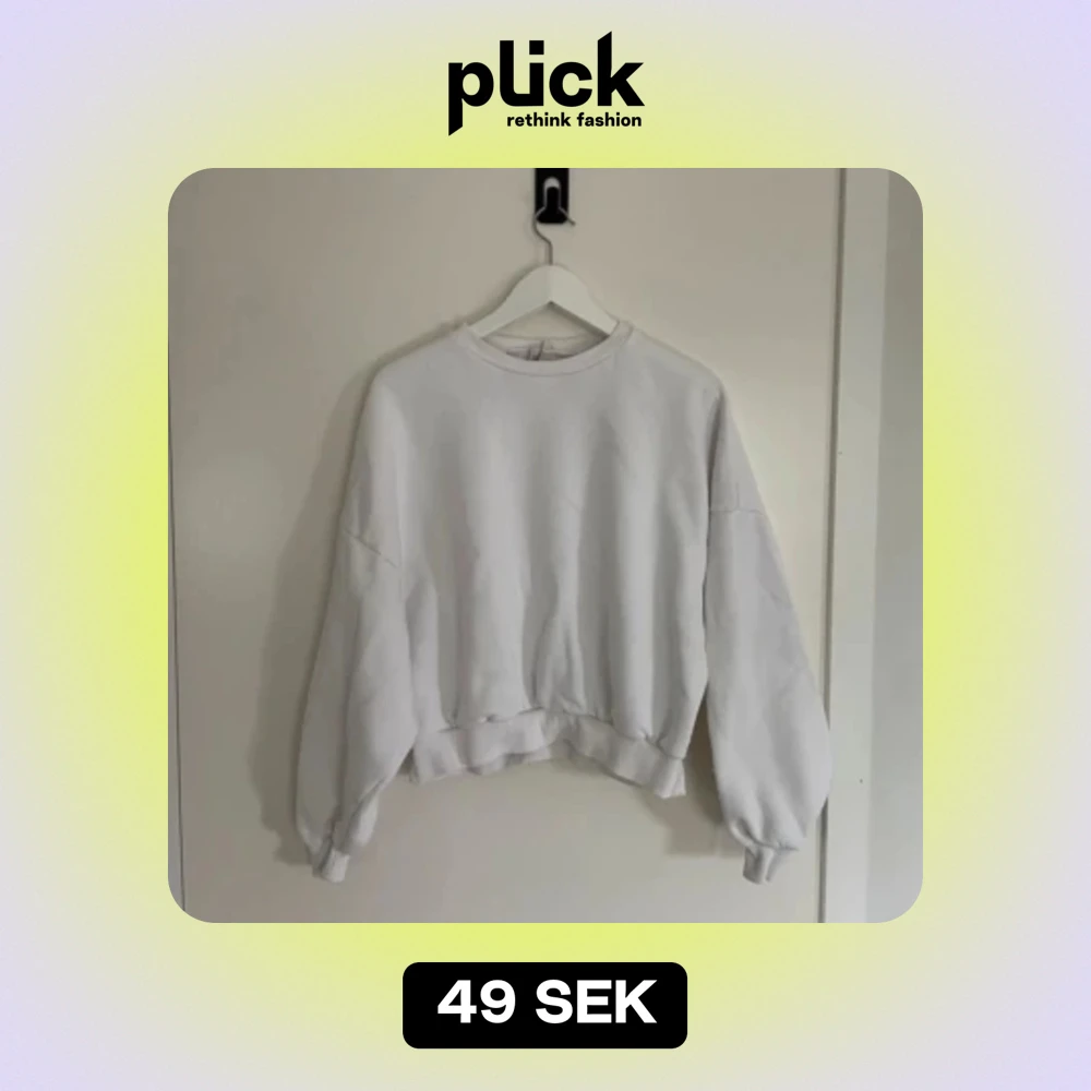 Säljer en supermysig vit oversized sweatshirt. Tröjan har långa ärmar och en normal rund halsringning.