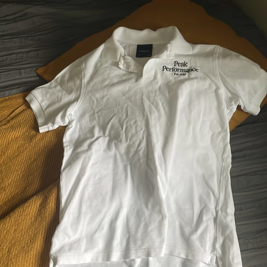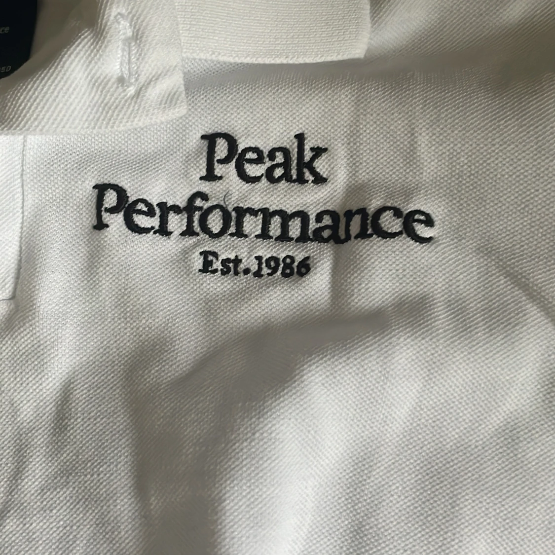 Klassisk vit pikétröja från Peak Performance med svart broderad logga på bröstet. Tröjan har korta ärmar, krage och knappar framtill. Perfekt för en clean och sportig stil. Tillverkad i mjuk bomull som andas.