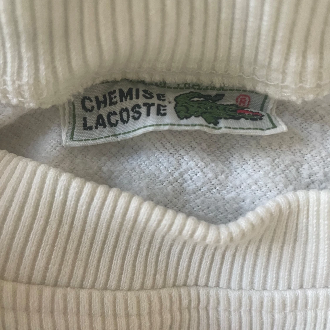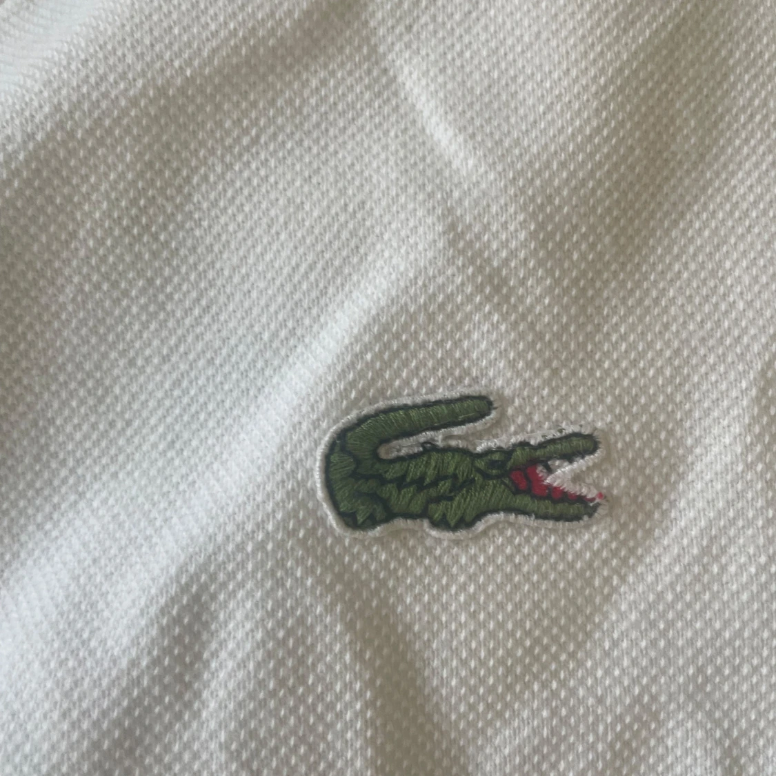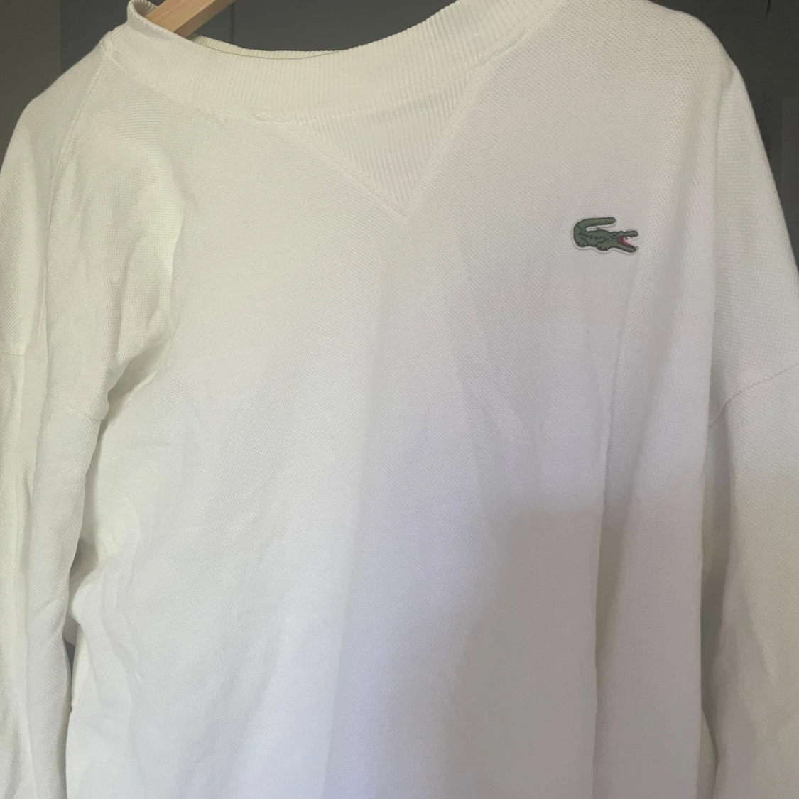 Vit pikétröja från Lacoste med klassisk krokodillogga på bröstet. Tröjan har ribbad v-ringad krage och är tillverkad i bomull. Perfekt för dig som gillar clean och sportig stil. Långärmad modell som funkar året runt. Storlek L/M.