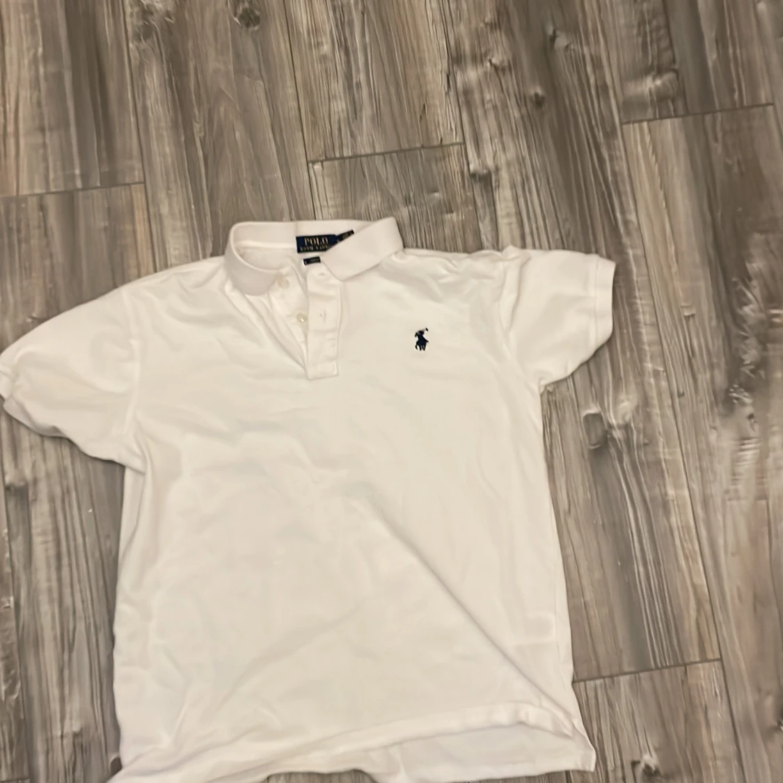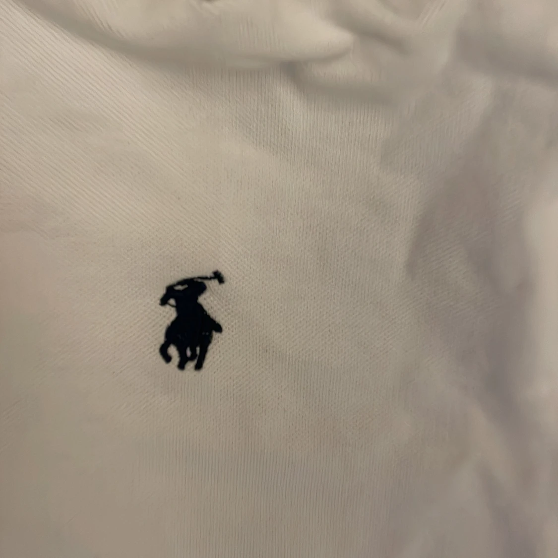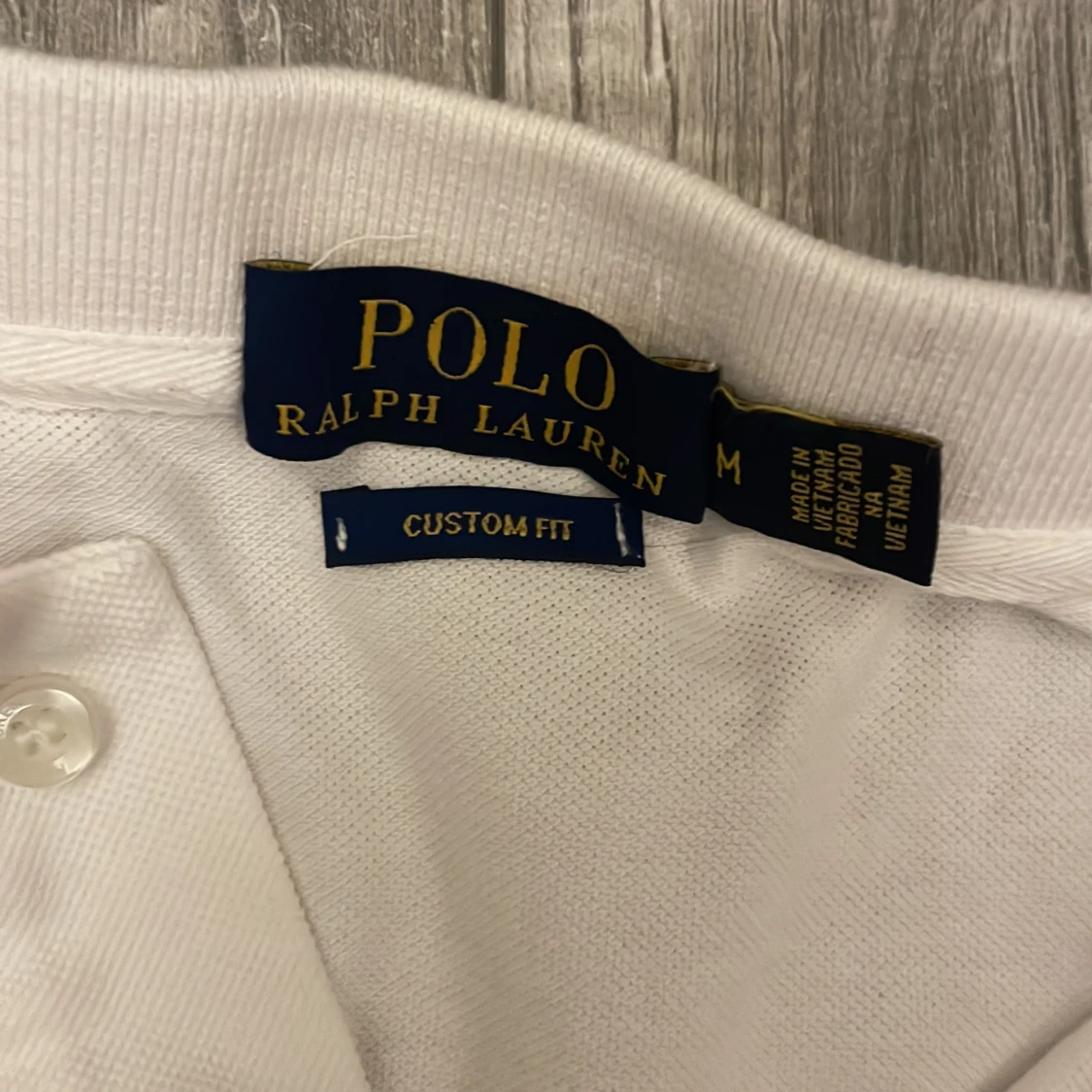 Klassisk vit pikétröja från Polo Ralph Lauren med broderad marinblå logga på bröstet. Tröjan har krage, knappar framtill och är tillverkad i bomull. Custom fit-modell som sitter snyggt och passar perfekt till en clean och stilren look.
