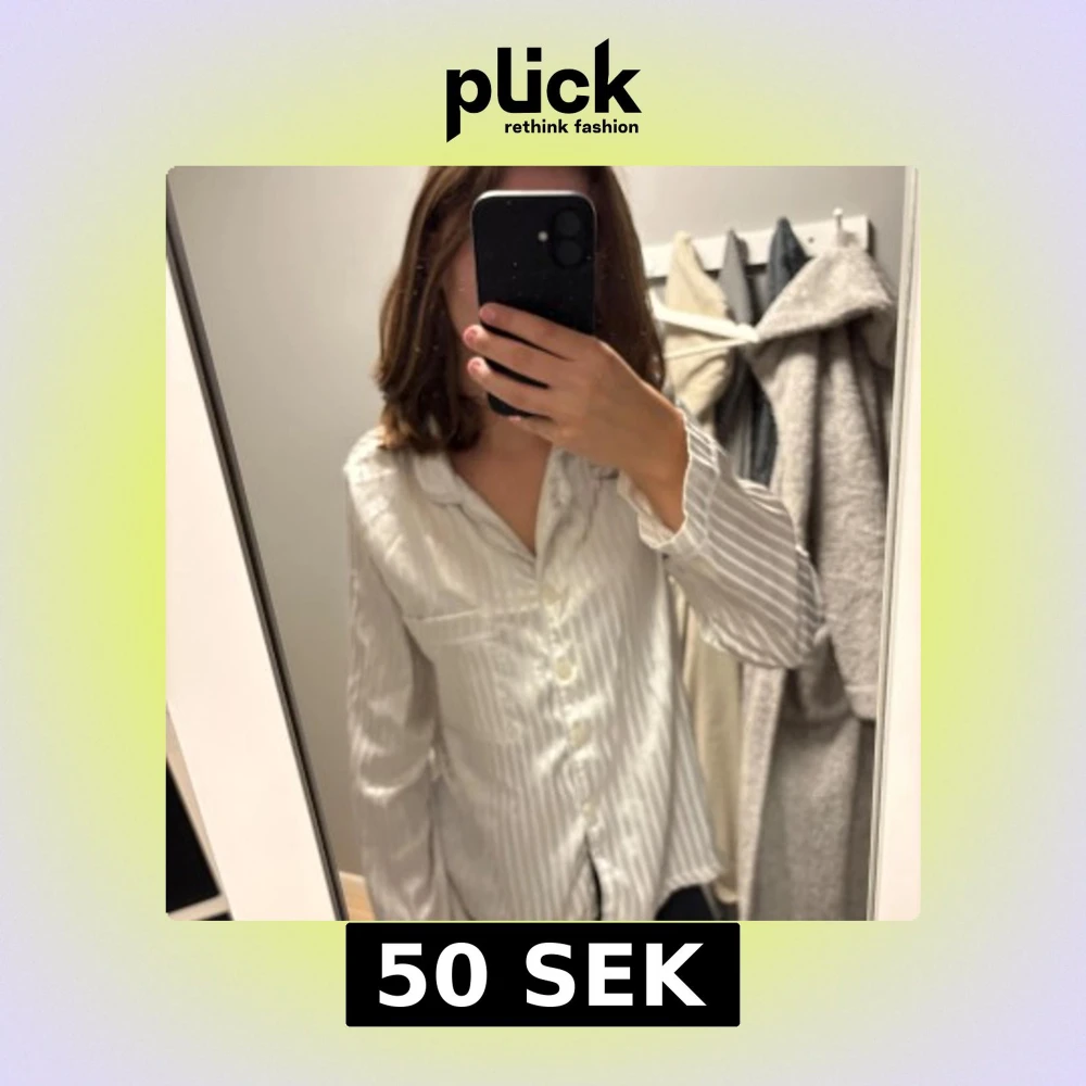 Säljer en vit pjamaströja/skjorta med upptagna knappar. Är i storlek S och kommer ifrån SHEIN. Knappt använd. Tillhör ett sett med byxor men som säljs separat🥥⚪️