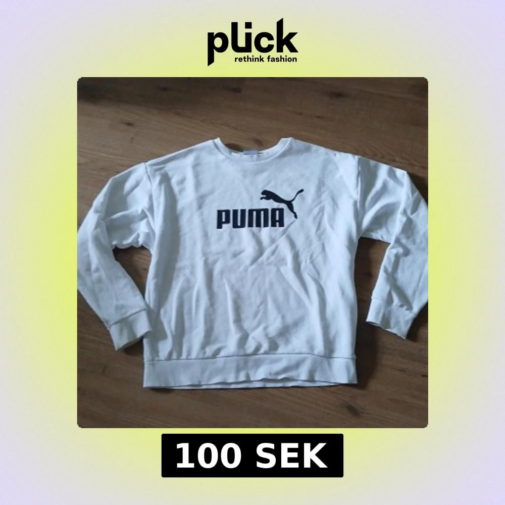 Vit sweatshirt från Puma med svart logga och tryck framtill. Klassisk rund halsringning och långa ärmar. Tröjan är i mjuk bomull och har ribbade muddar vid ärmslut och nederkant. Perfekt för en sportig och avslappnad stil. Pris kan diskuteras
