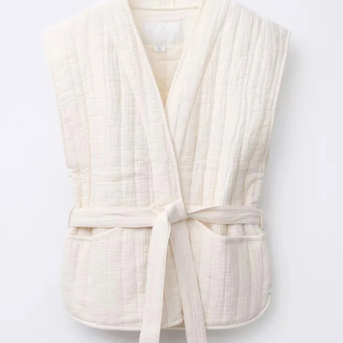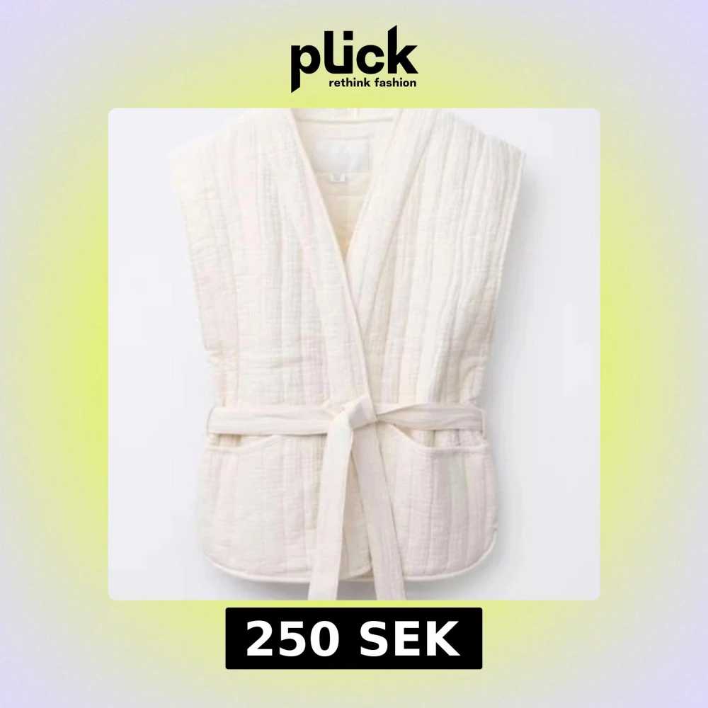 Säljer en stilren vit/beige quiltad väst med knytband i midjan och två fickor framtill. Västen är as cool och passar nästan till allt!! Köpt för 359kr och säljer för 250❤️ Aldirg använd endast prövad!! Tryck på köp nu och du inte har några frågor❤️😊