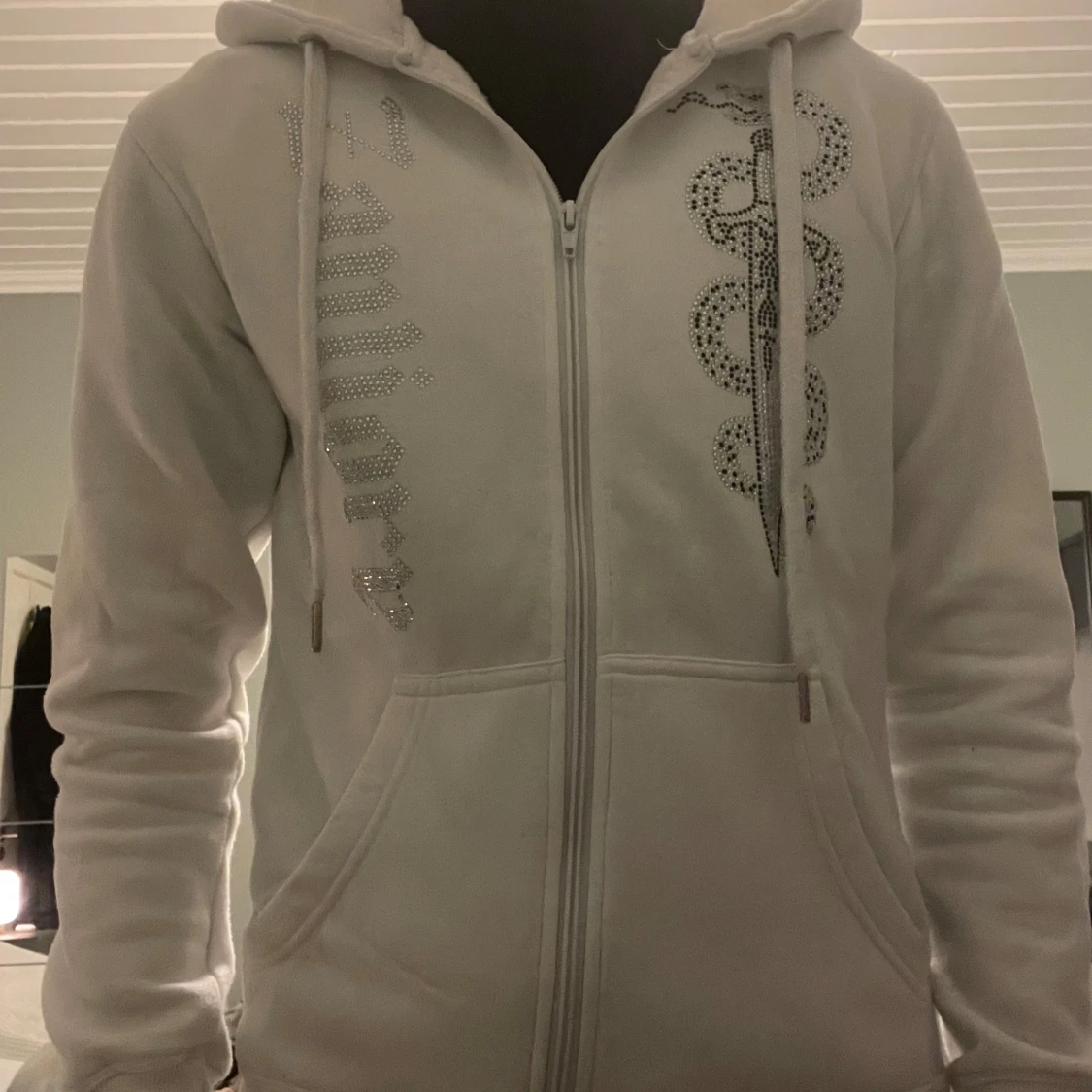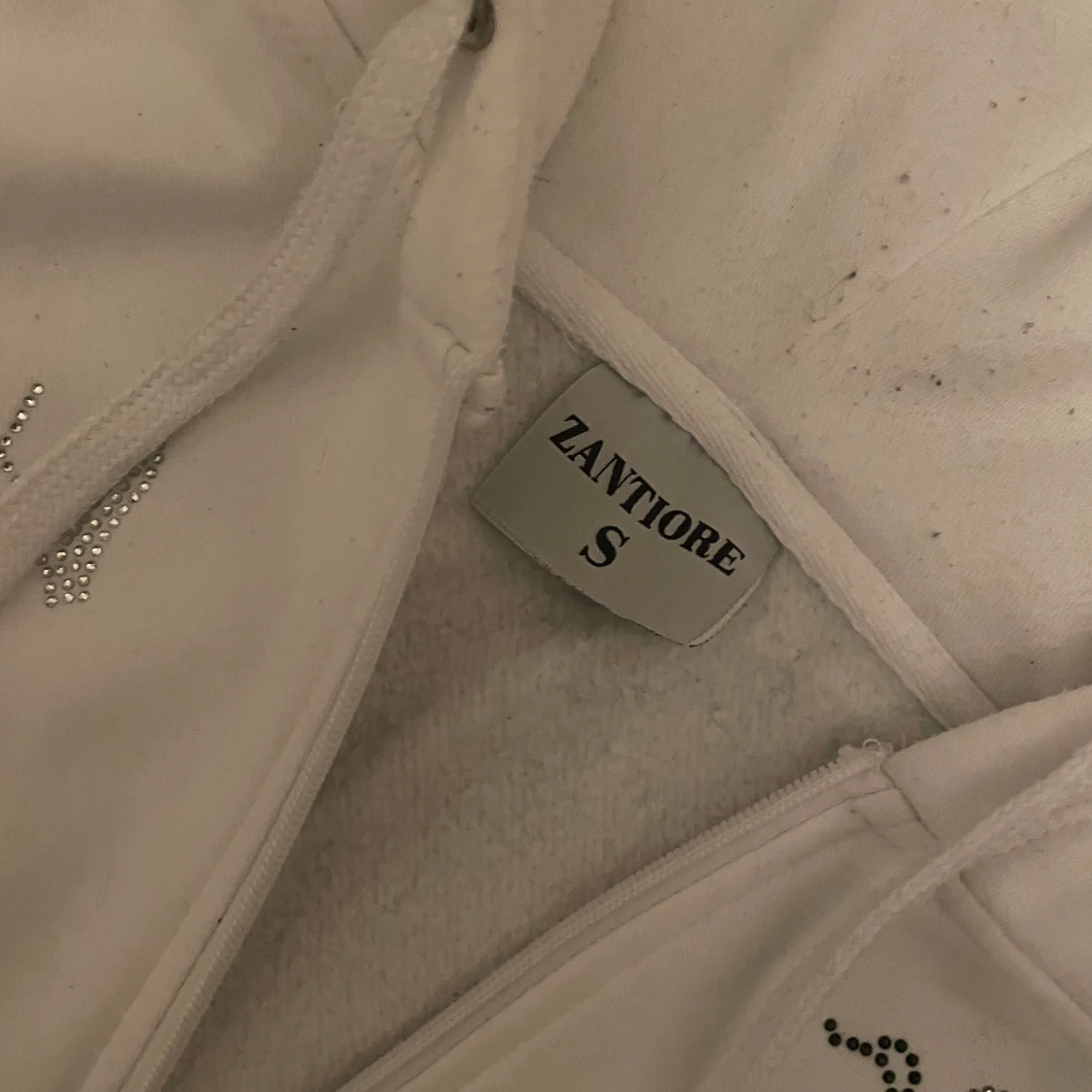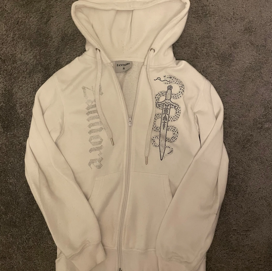 Säljer en snygg vit hoodie från Zantiore i storlek S. 7/10 skick.