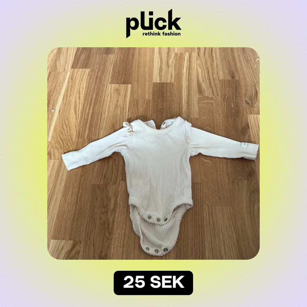 Söt vit ribbad body från Newbie i storlek 62 för 2-4 månader. Den har långa ärmar och fina volangdetaljer vid axlarna. Perfekt för små äventyrare!