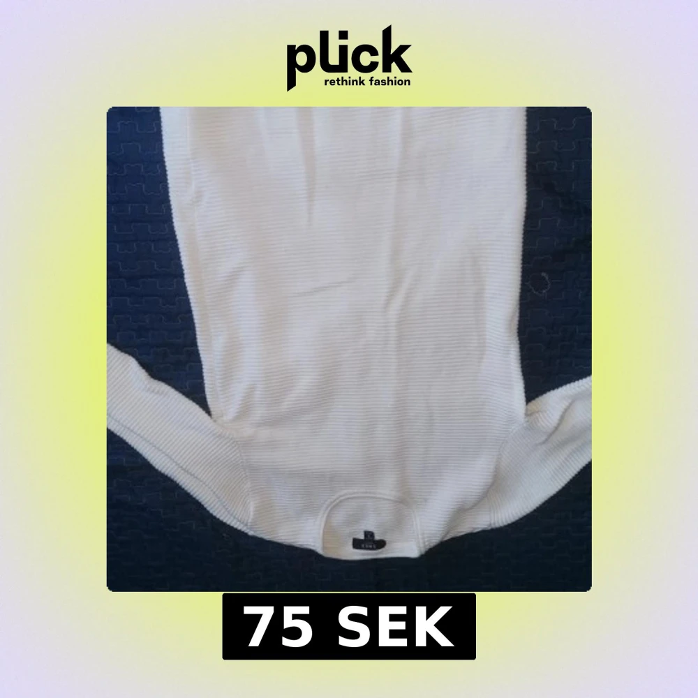 Säljer en stilren vit ribbad bodysuit från SMOG. Perfekt för lager-på-lager eller att bära som den är. Den har en enkel design med knäppning i grenen.