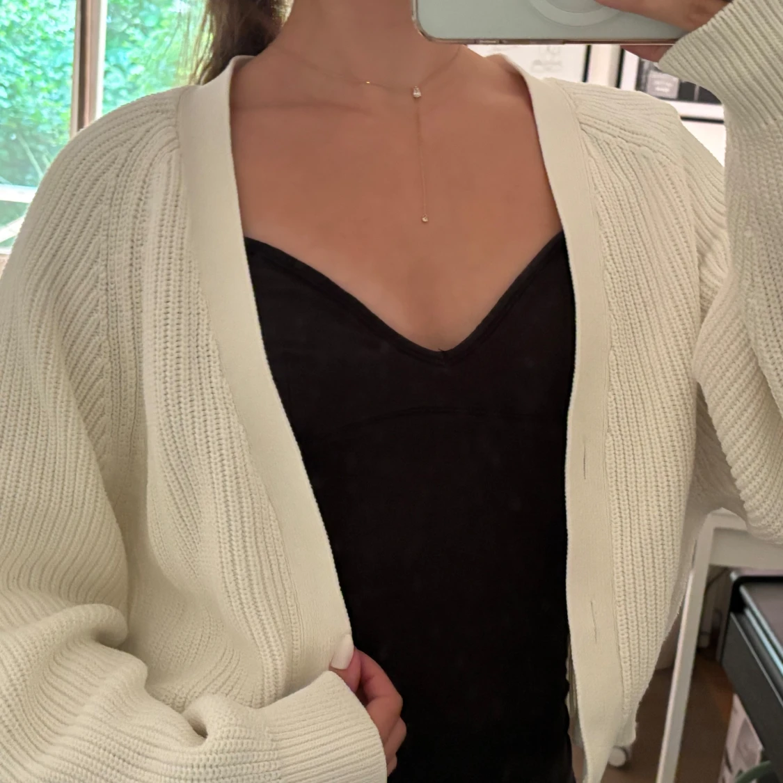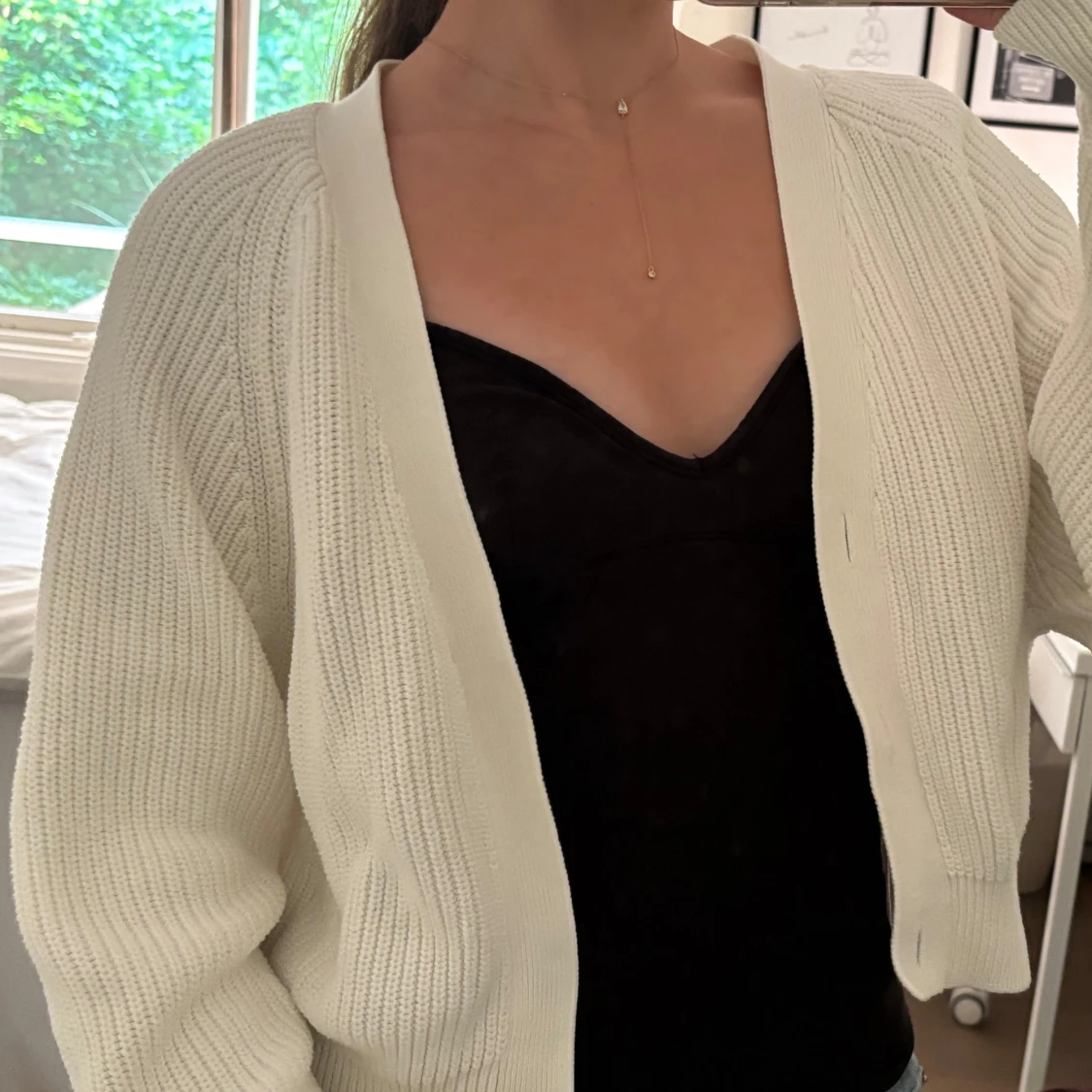 Fin vit ribbad kofta, har tagit bort knapparna. Perfekt till sommaren!