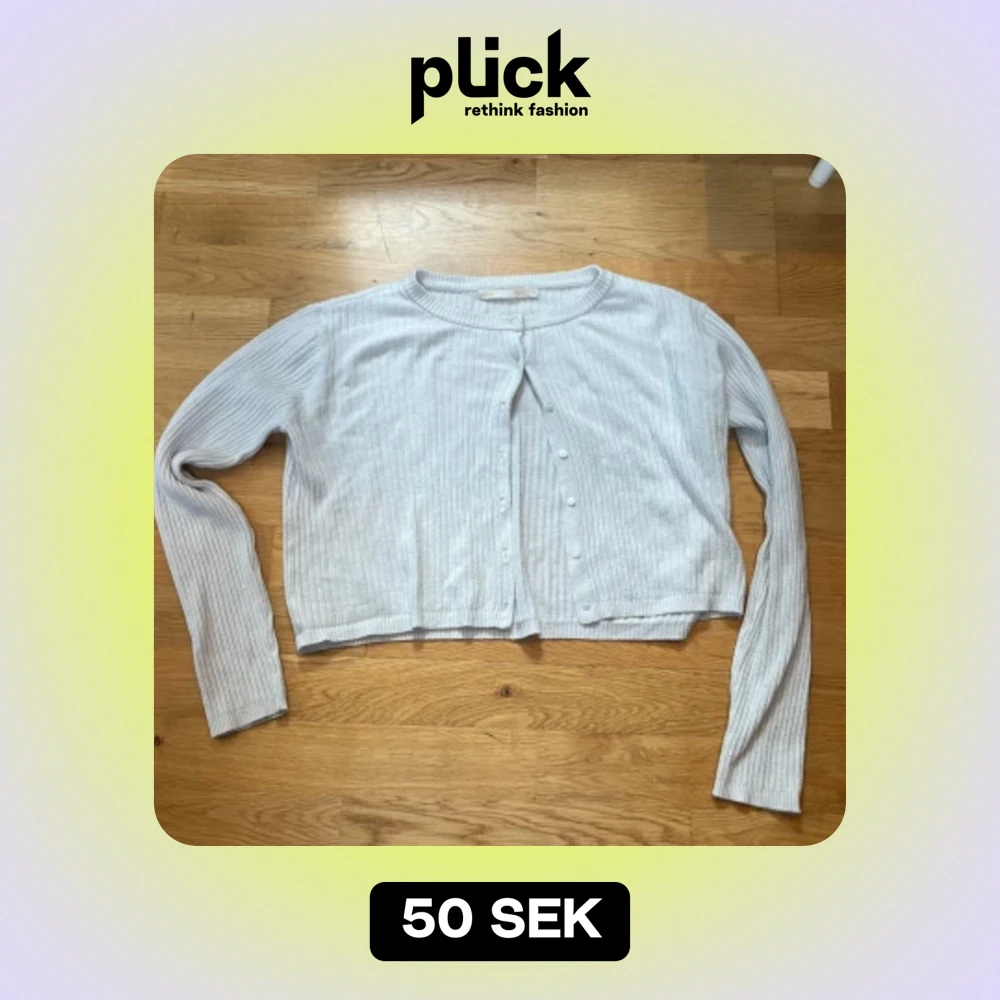 Säljer en superfin vit ribbad kofta med knappar framtill. Den har långa ärmar och en croppad passform som gör den perfekt för lager-på-lager-stil. Koftan är i bra skick och passar bra till allt. säljer även en ljusare vit kofta som man knyter.