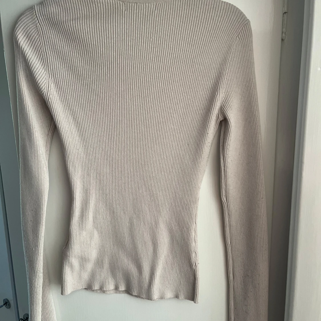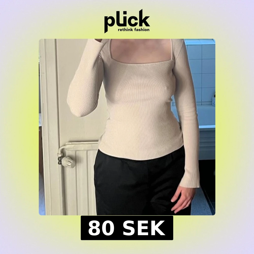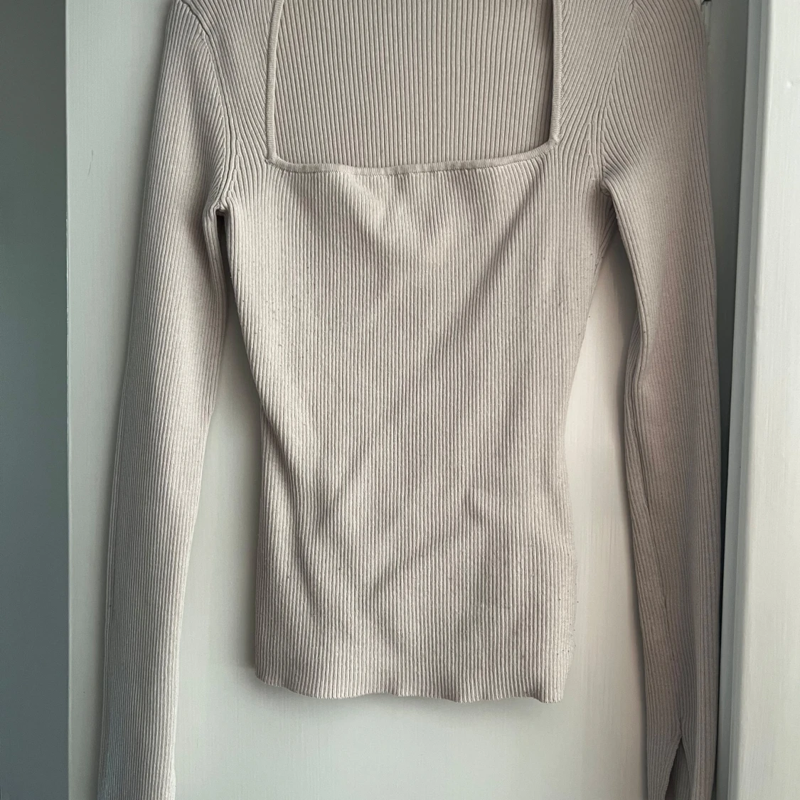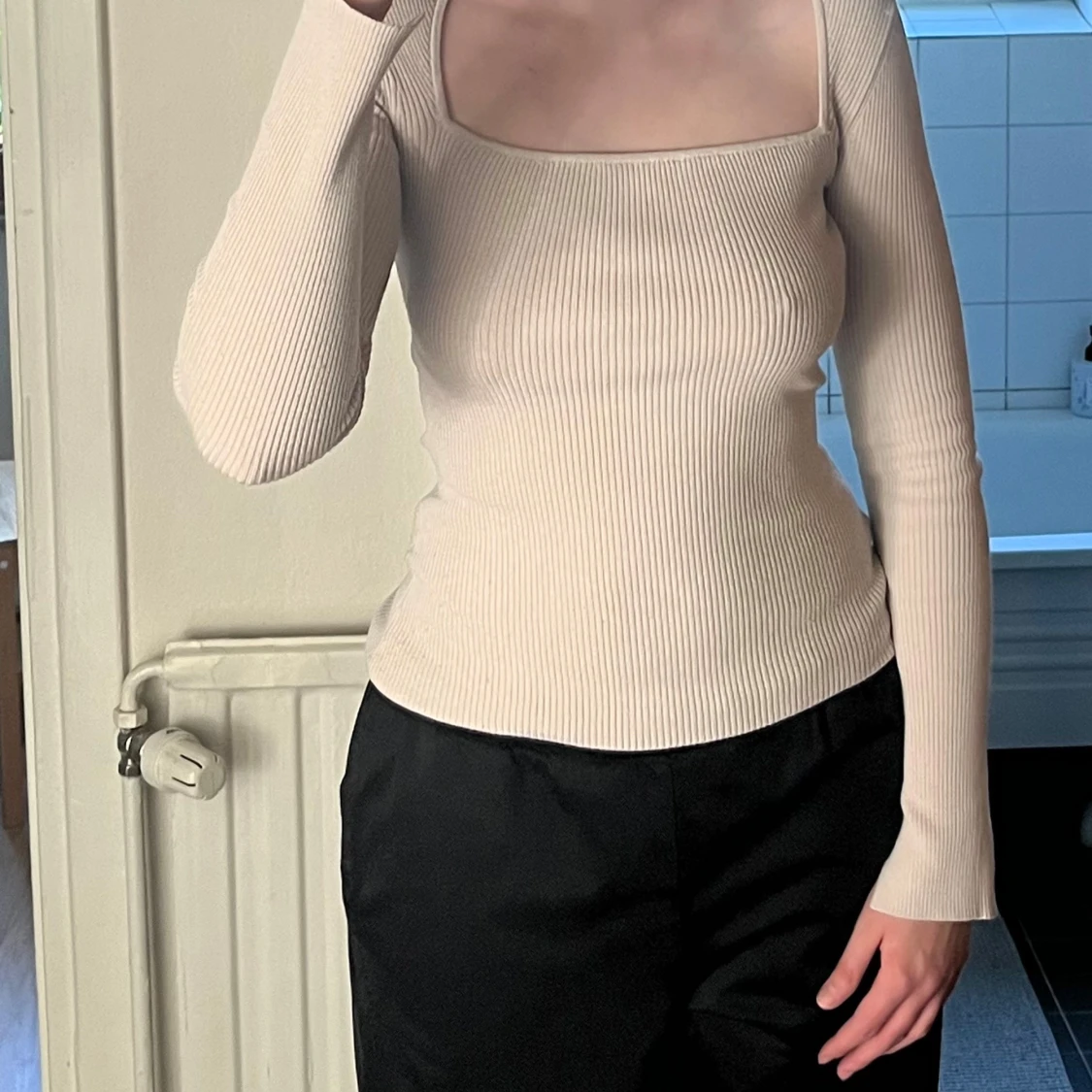 Off white ribbad långärmad topp med fyrkantig urringning. Sitter figurnära! Stretchigt mjukt tyg! Passar S / M