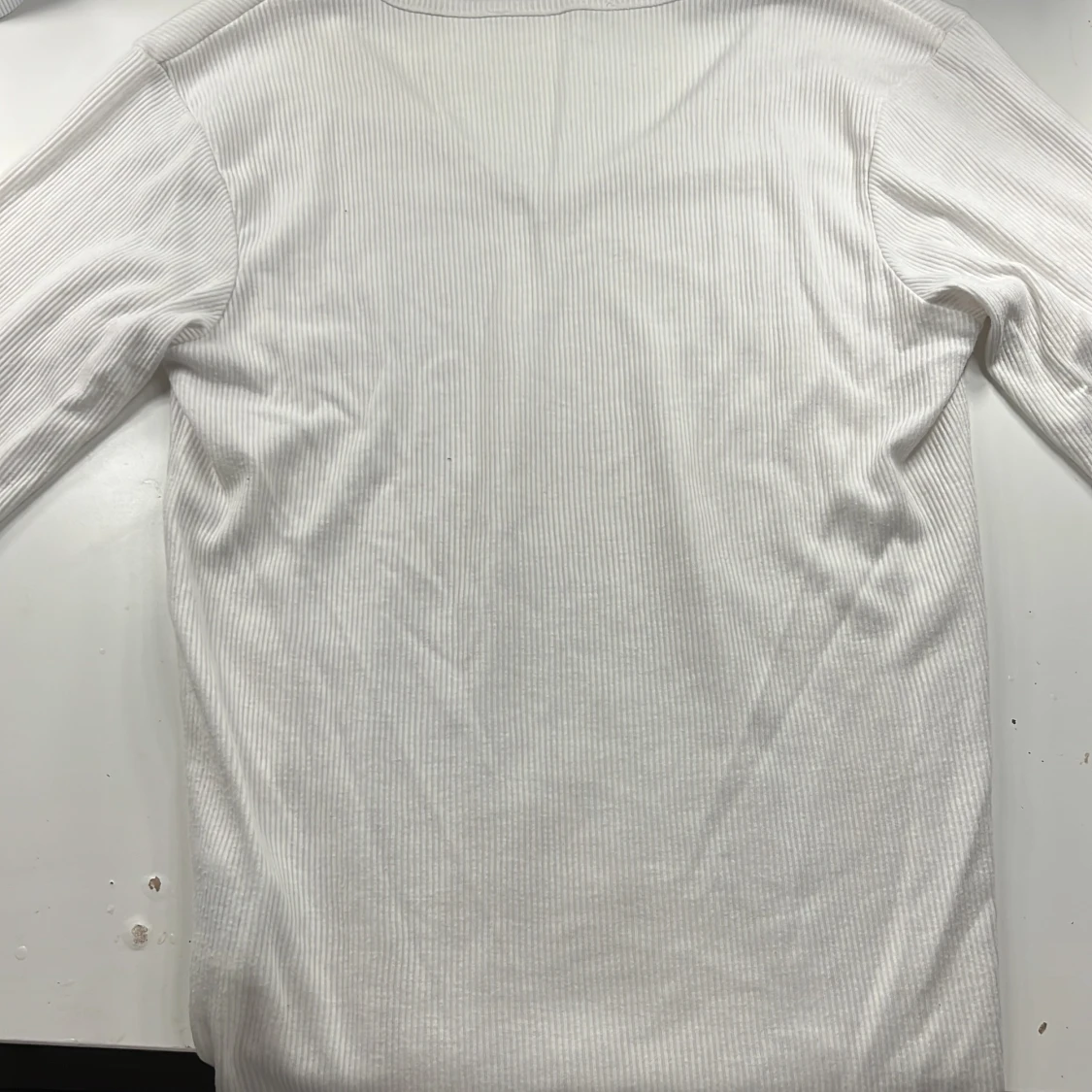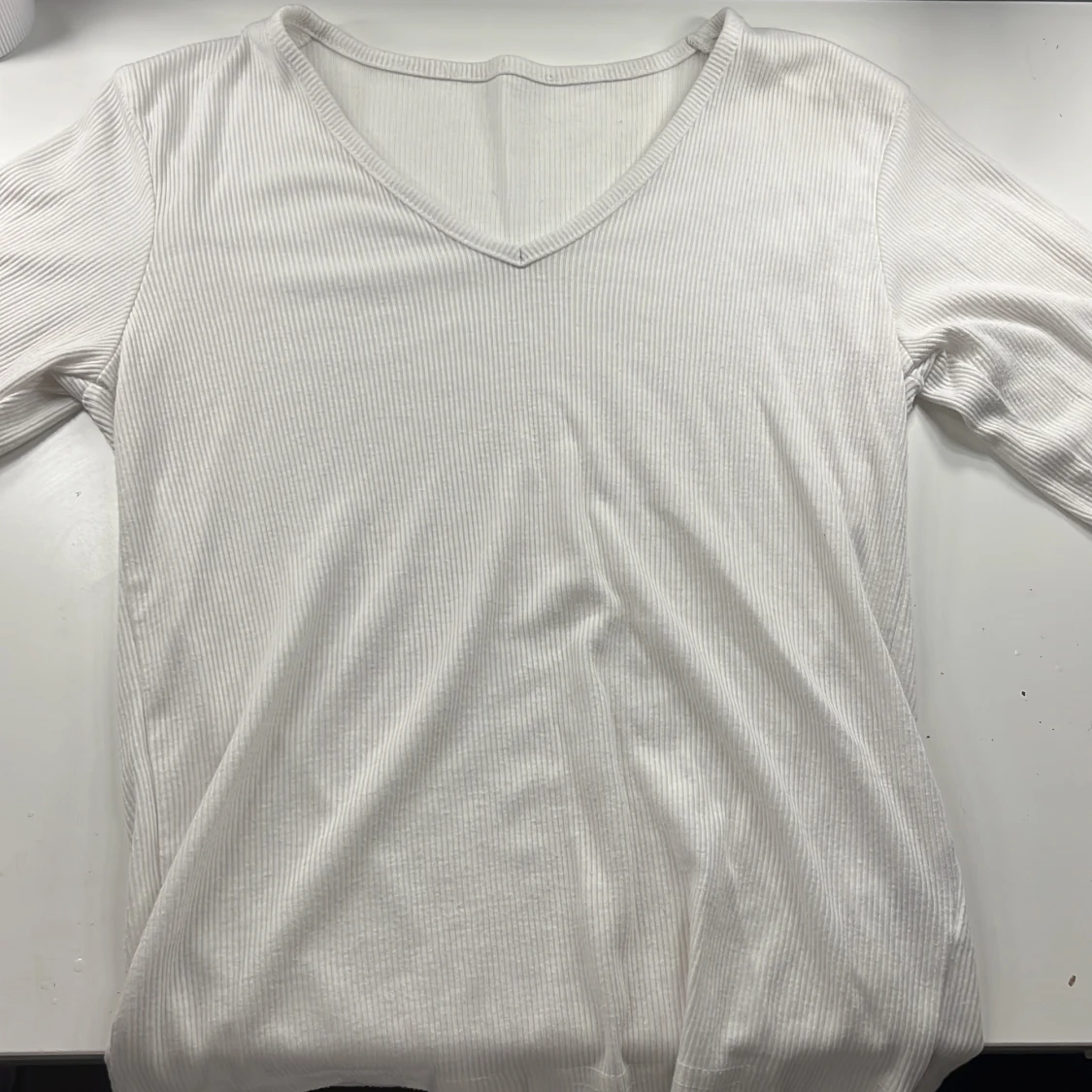 Säljer en stilren vit ribbad topp med v-ringning. Den har långa ärmar.Likadan som den svarta som ligger uppe. Från lager 157.storlek s men passar även xs.