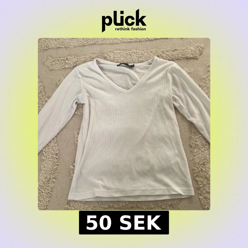 Vit långärmad topp från lager157 i ribbad bomull med v-ringning. Enkel och stilren modell som är lätt att matcha till olika outfits. Perfekt för dig som gillar basic-plagg med en snygg passform.