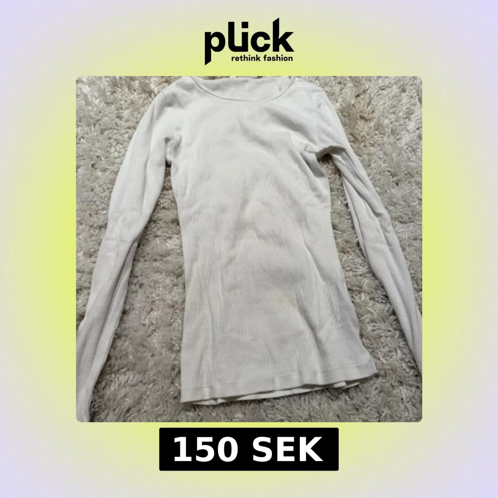 En basic vit långärmad tröja från H&M i ribbad bomull. Tröjan har en rund halsringning och sitter tajt mot kroppen, perfekt att styla med jeans eller kjol. Enkel och stilren design som funkar året runt.