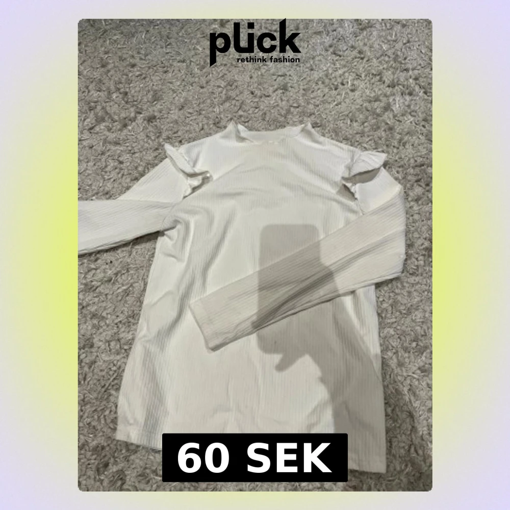 Säljer en vit långärmad tröja från Shein i storlek 11-12 år. Tröjan har ett diskret ribbat mönster och volangdetaljer vid axlarna som ger en söt touch. Passar dig som gillar stilrena och enkla plagg med lite extra detalj.