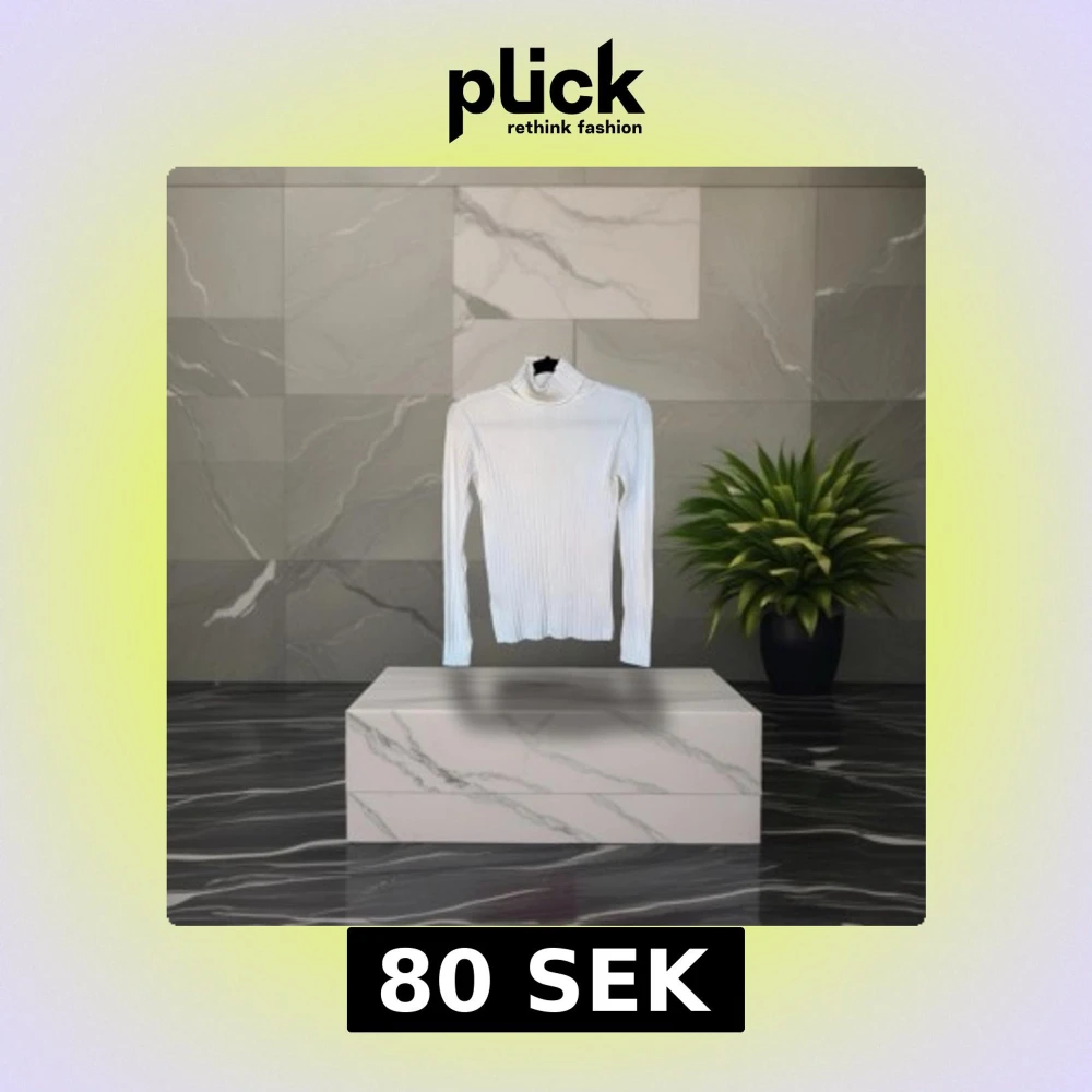 Vit ribbad polotröja från Lindex i storlek S. Tröjan har lång ärm, hög polokrage och är figurnära i modellen. Perfekt att styla med jeans eller kjol för en clean och snygg look.