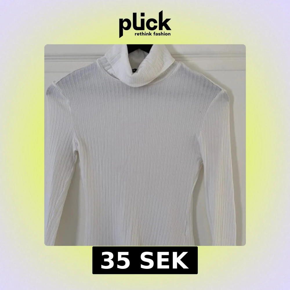 Säljer en vit ribbad polotröja från SHEIN i storlek S. Tröjan har lång ärm, hög polokrage och är tillverkad i ett stretchigt material som sitter snyggt på kroppen. Perfekt att styla med jeans eller kjol för en clean look.