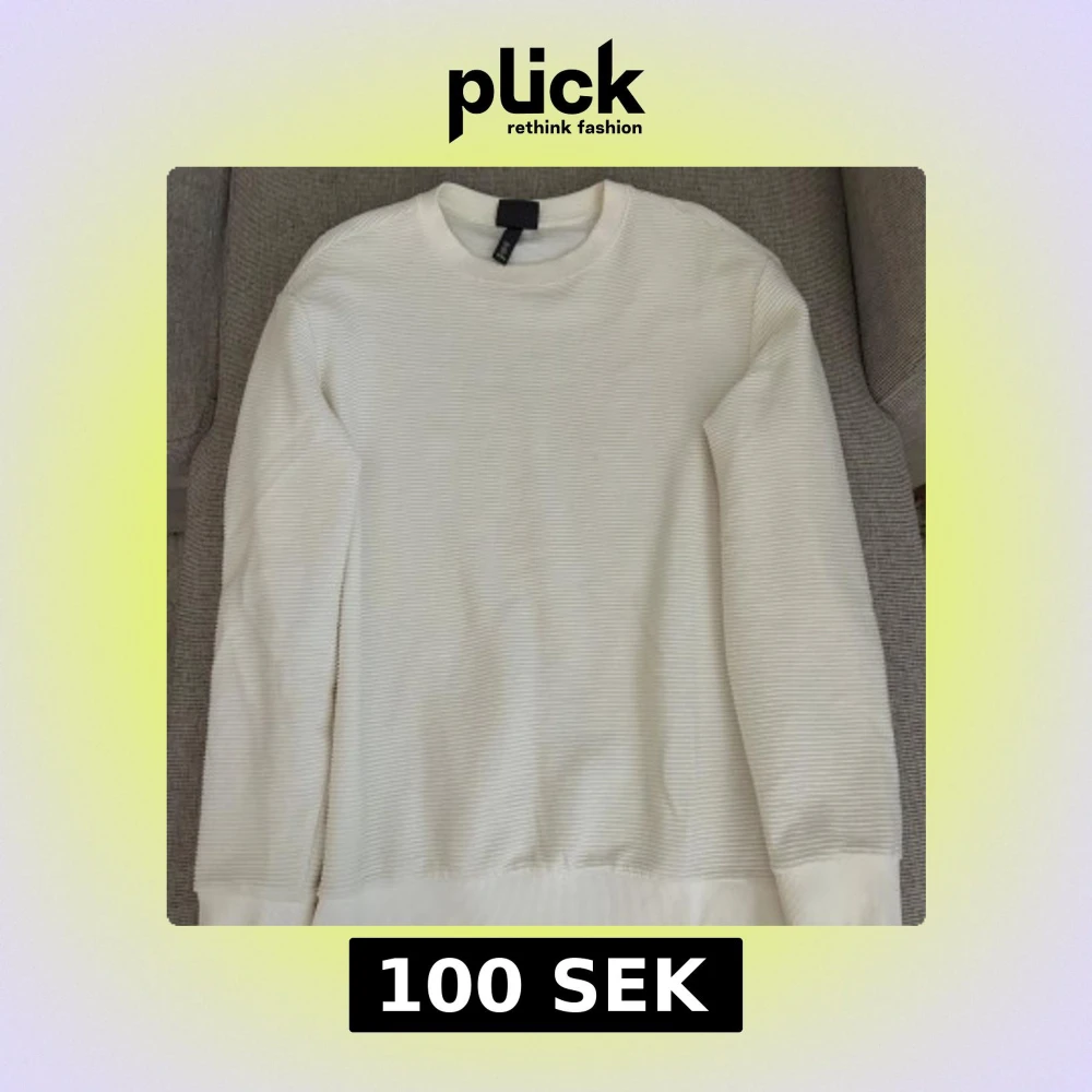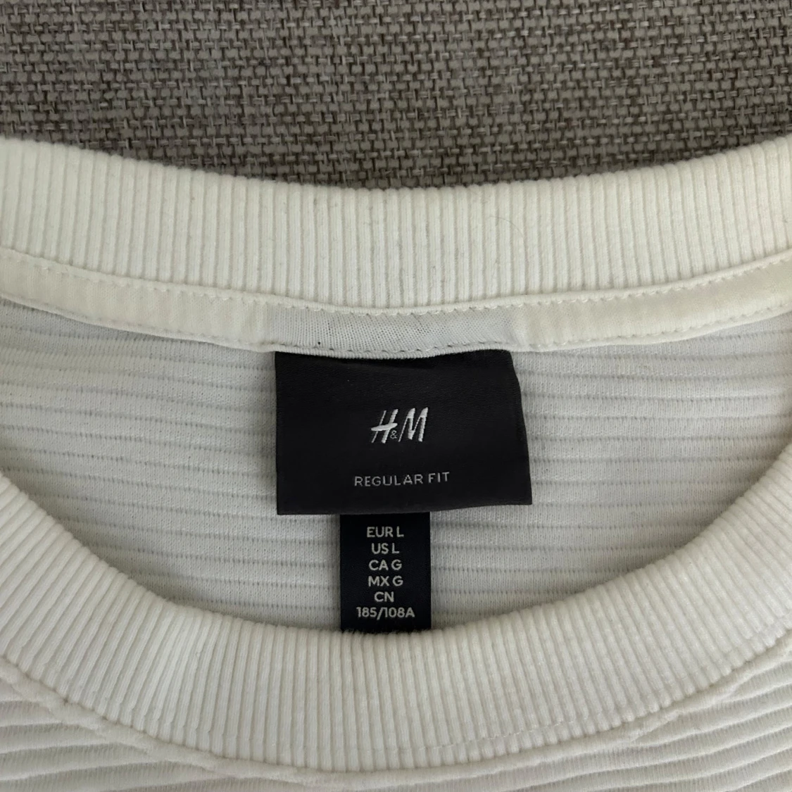 Säljer en stilren vit ribbad tröja från H&M i regular fit. Tröjan har rund halsringning och långa ärmar, perfekt för en clean och enkel look. Passar till många olika outfits och är superbekväm.