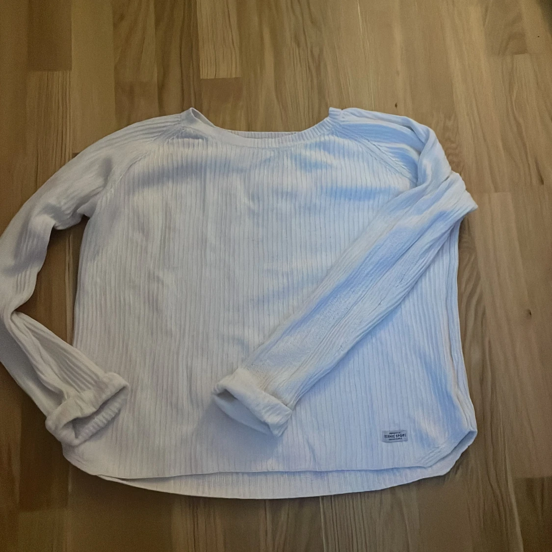Säljer en vit ribbad/stickad tröja från Iconic Sport i storlek L. Tröjan är långärmad och perfekt för en avslappnad stil. Den är i bra skick och passar utmärkt till både vardag och mysiga hemmakvällar. Ett måste i garderoben för alla som älskar bekväma kläder!