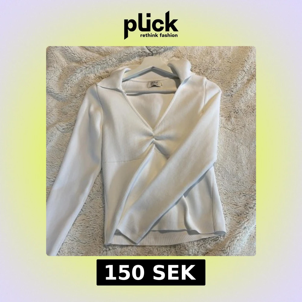 Säljer en stilren vit ribbad tröja från ONLY. Tröjan har en v-ringad design med en snygg rynkdetalj framtill och långa ärmar med krage. Jätte fint för en mer elegant stil