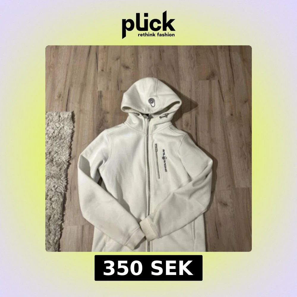 Säljer en vit hoodie från sail racing med dragkedja framtill och en bröstficka med logga. Tröjan har huva med snörning och långa ärmar. Perfekt för kyliga dagar och enkel att matcha med det mesta.