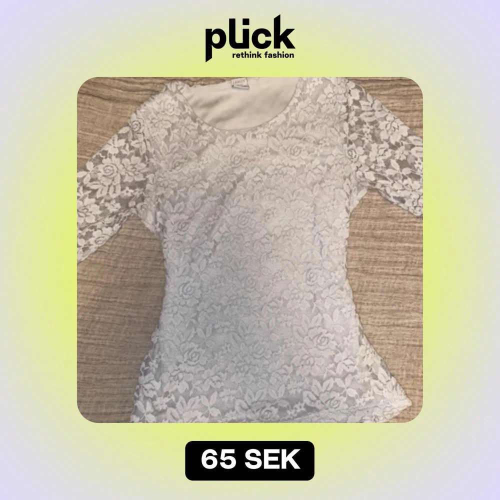 Vit spets tröja som skulle passa xs-s, säkert m också beroende på vilken passform man vill ha 💕