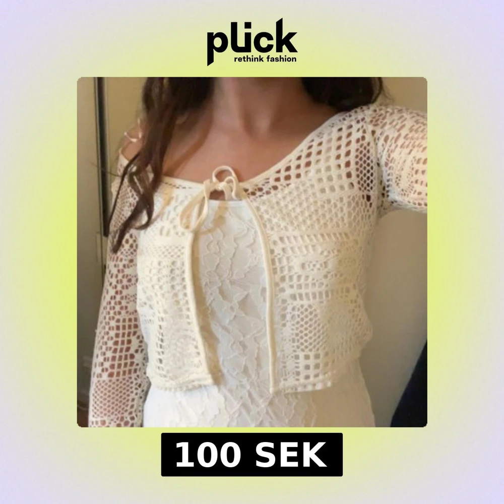 Säljer en söt vit spetsbolero från H&M. Den är croppad och har långa ärmar med knytning framtill. Perfekt för att lägga till en romantisk touch till din outfit.