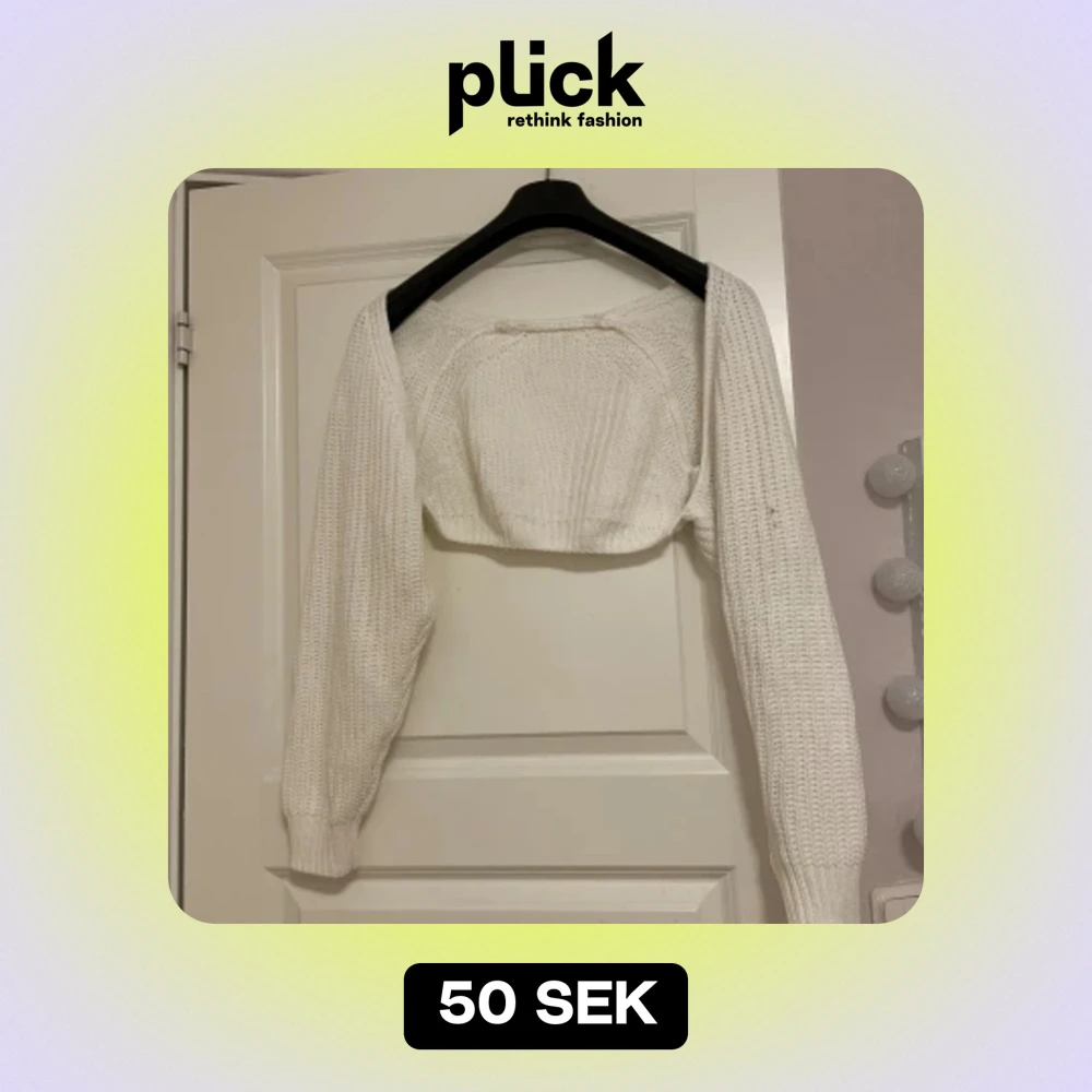 Säljer en superfin vit stickad bolerotopp. Den är perfekt för att lägga till lite extra värme och stil till din outfit. Toppen har långa ärmar och en mysig, ribbad kant. Perfekt för höst och vår!, högra armen har en liten fläck,har ej tvättat,oanvänd