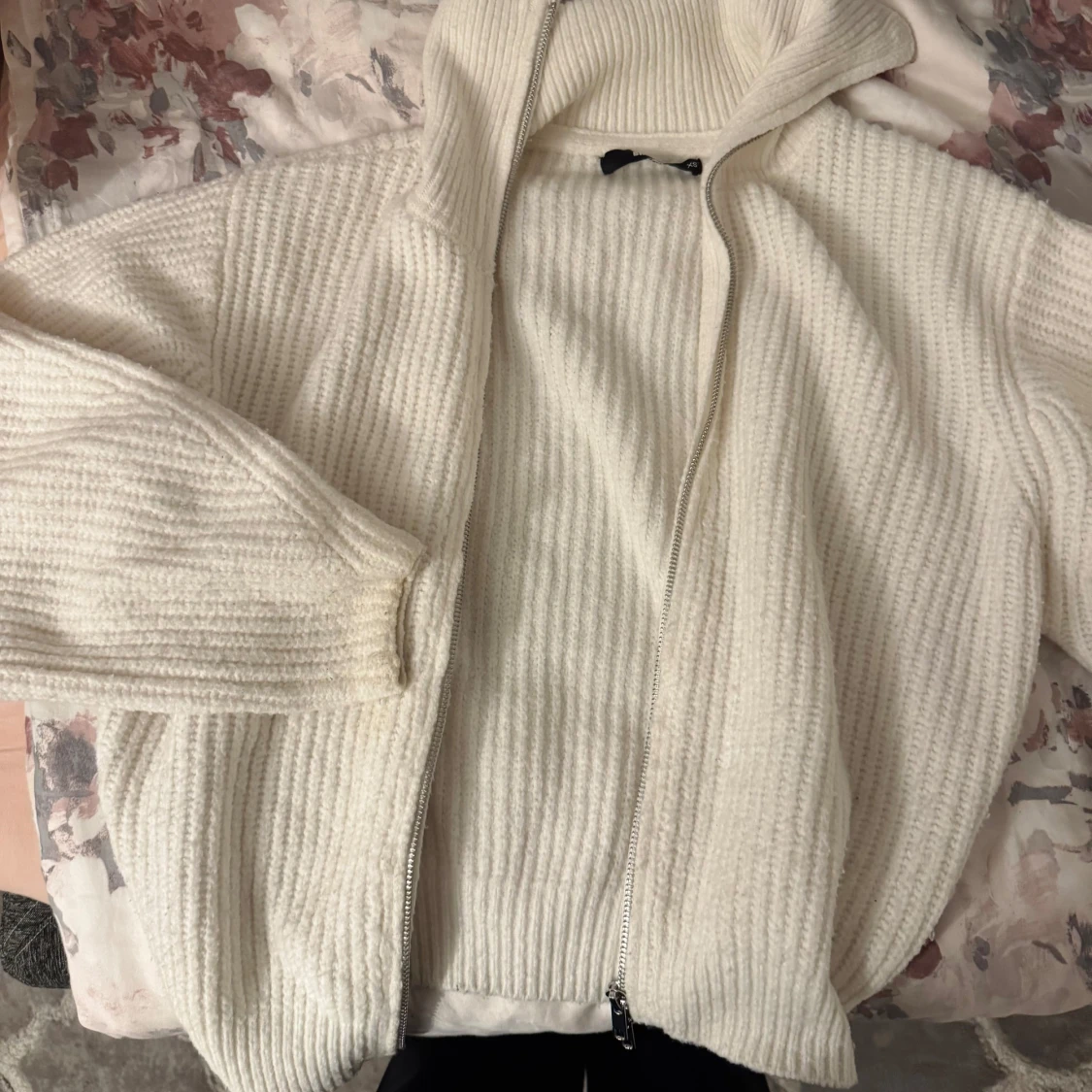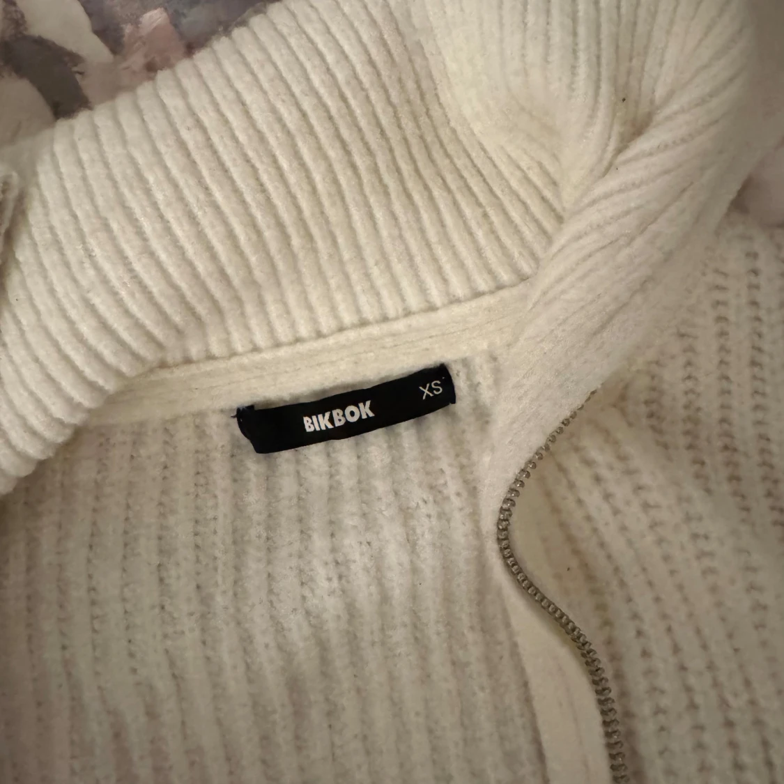 Mysig vit stickad hoodie från BikBok i storlek XS.